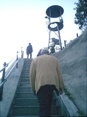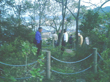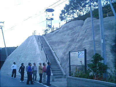 について解説してくれている。説明板わきのコンクリート段を昇っていく。ここも10mほどの小高い丘で、尾根が突き