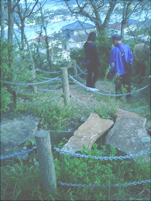 出た突端に箱式石棺がむき出しになっている。三根遺跡といい、今まで見てきた対馬の遺跡は、全て海に付き出した小尾