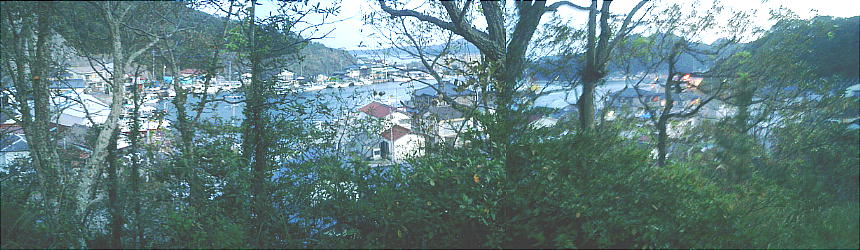 比田勝港のすぐ側にある。港まで徒歩5分くらいのところである。上対馬町比田勝港の北東、西泊湾をのぞむ低い旧岬上