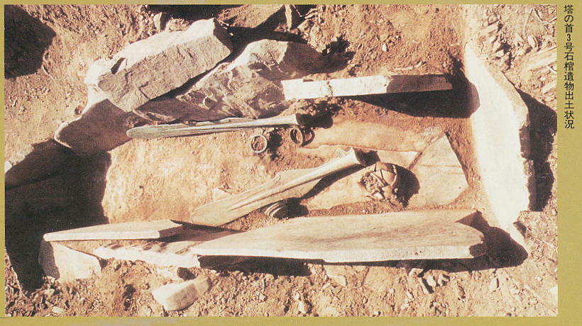 は朝鮮式の無文土器と北九州系の弥生土器の両方が出土している。特に注目されるのは、第3号棺から発掘資料としては