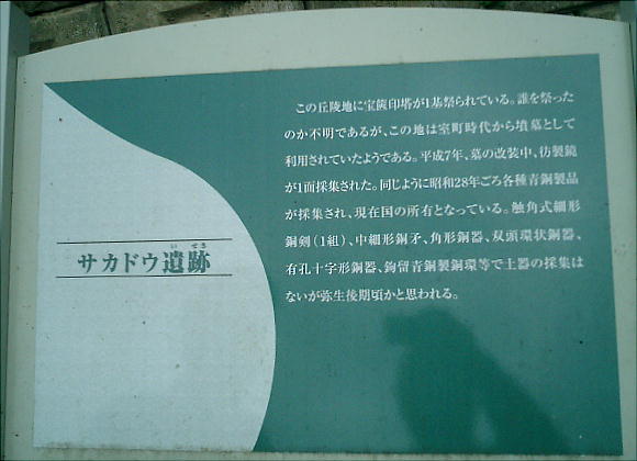 掘調査でこの墓地から発見された。その翌年、同じ川べりのタカマツノダン遺跡(ここはとうとうわからなかった。)