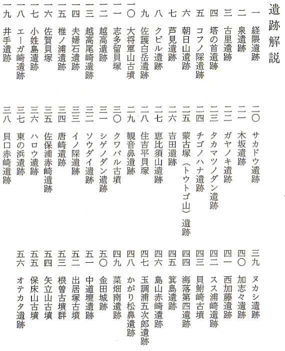 サカドウ遺跡と、仁田の中来栖(なかくるす)遺跡である。この2例とも弥生後期と考えられ、石棺からの出土ではな