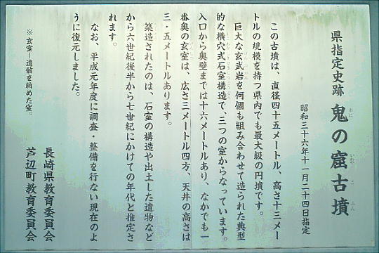 鬼の窟古墳(鬼の岩屋) 県内で最も大きい円墳である。とてつもなくデカイ岩で覆われている。飛鳥の石舞台よりデカいのではないかと思う。