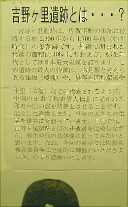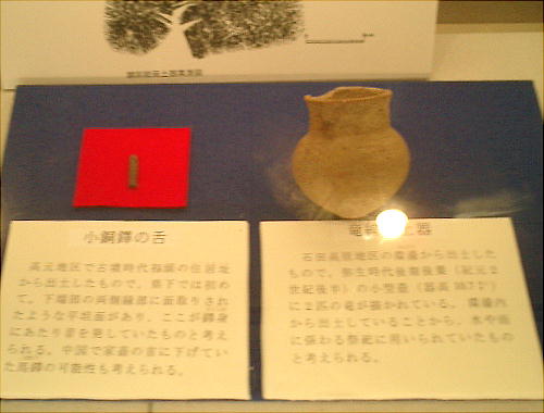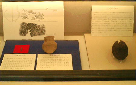 佐賀の「吉野ヶ里」遺跡からの出土物も数点展示してあった(下)。