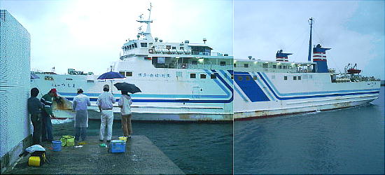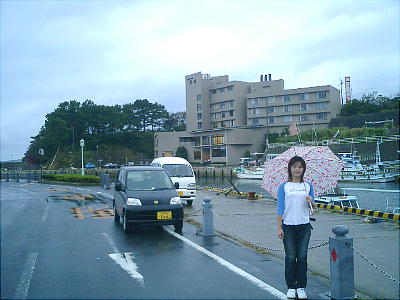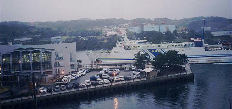 デカいフェリーが入ってきたので、見に行こうと朝食前に有志で附近を散歩したら、小雨が降ってきた。