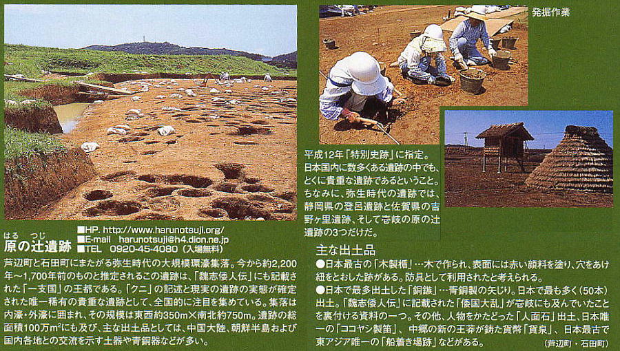 芦辺町と石田町にまたがる丘陵を中心とした、今から約2200〜1700年前の弥生時代の大規模環濠集落で、「魏志倭人伝」に