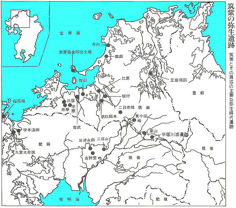 弥生時代初めから中期にかけての、領域内の中心的な場所で国王の居所の侯補となれるような遺跡は、福岡県や佐賀県な