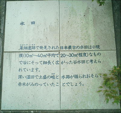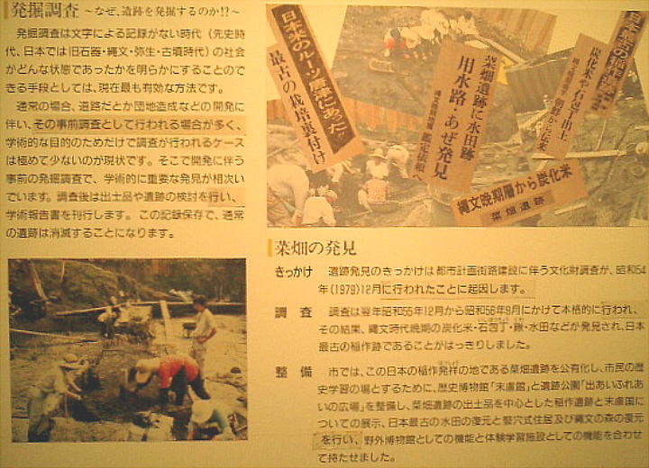 約2600年前の縄文時代晩期に、大陸から伝えられた稲作を日本で初めて行っていたと思われるのが菜畑である。遺跡