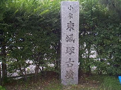 小泉城は別名・片桐城、小泉陣屋とも呼ばれ、現在、小泉城跡、片桐城址の石碑が、大和郡山市小泉町に
