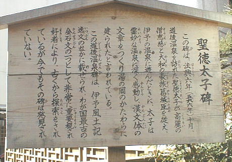 法興6年(596)聖徳太子が伊予温泉を訪れ、伊佐爾波(いさにわ)の岡(現道後公園)に登り、霊妙な温泉に深く感動し、風