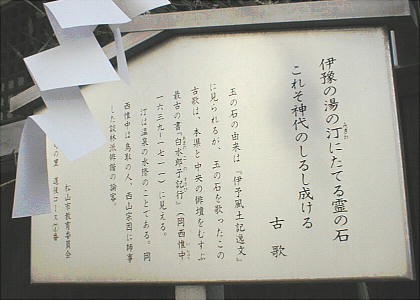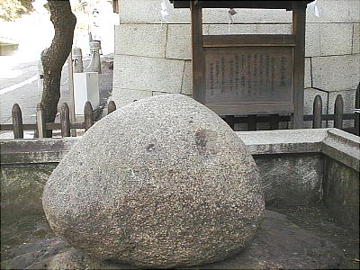 以下がその「玉の石」である。道後温泉本館北側に設置されているが、勿論真偽のほどは定かではないし、伊豫国風土記も現