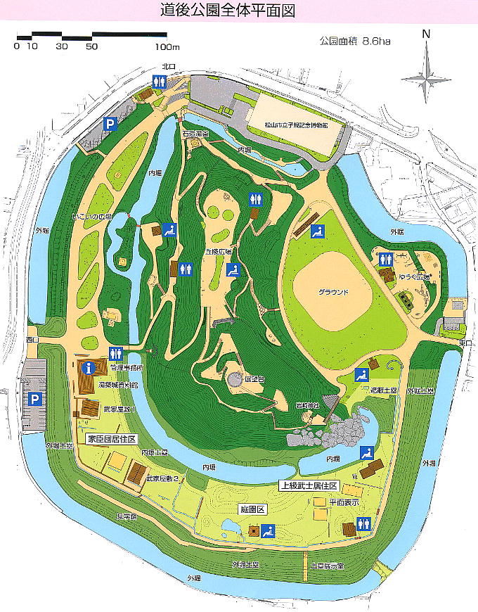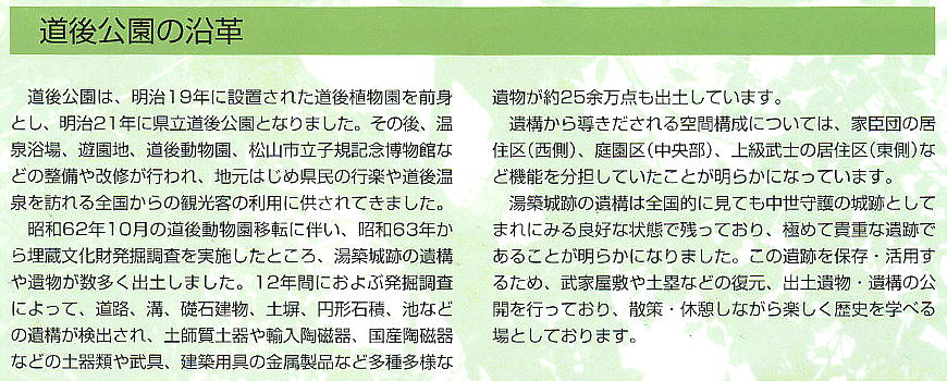 さぁそれでは、中世の道後温泉の豪族、河野氏の「湯築城遺跡」を訪ねよう。と言っても、居城そのものは砦のようなもので、