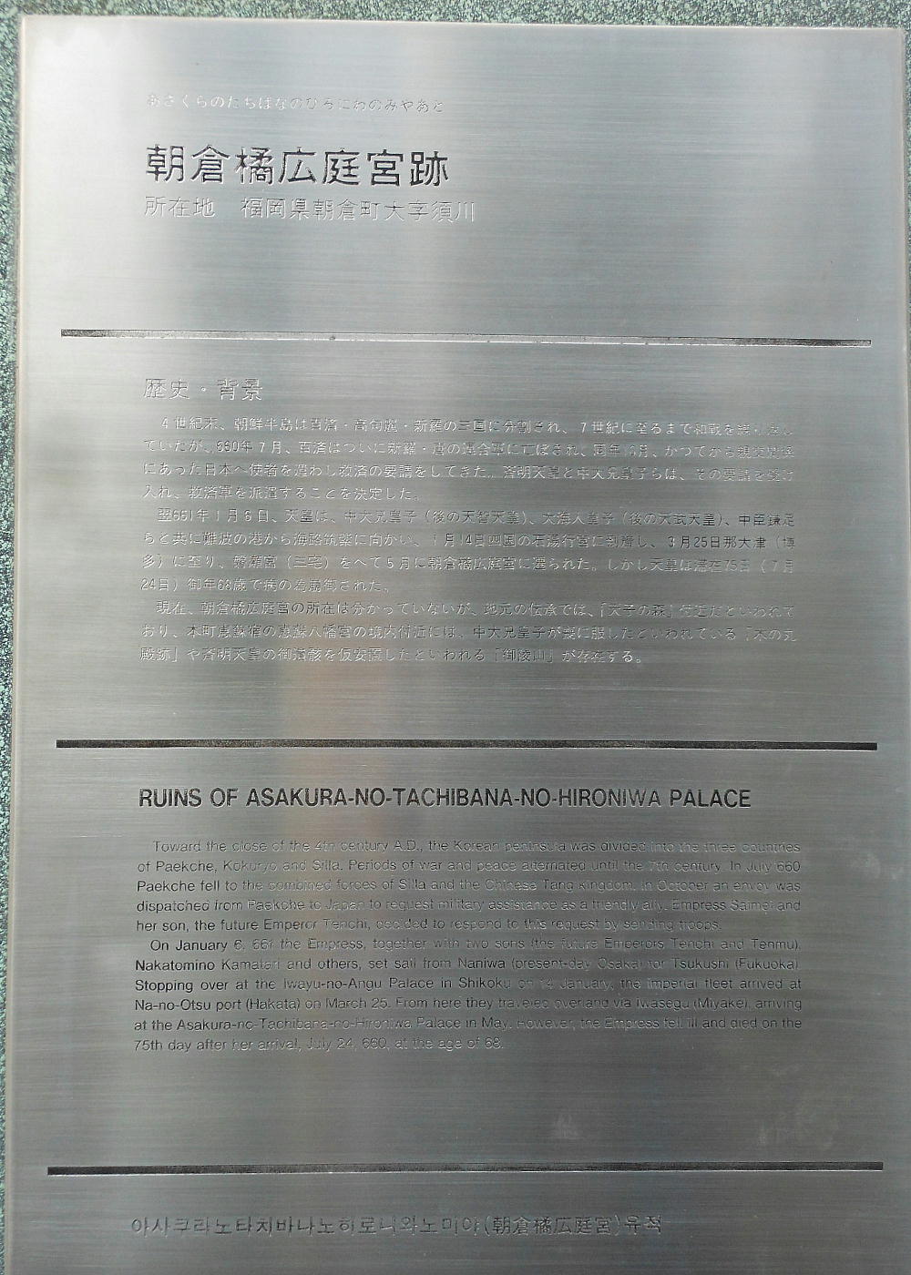 みや)に入り、5月9日 に朝倉橘広庭宮に遷して、百済復興の戦に備えた。しかし、7月24日に朝倉宮で崩