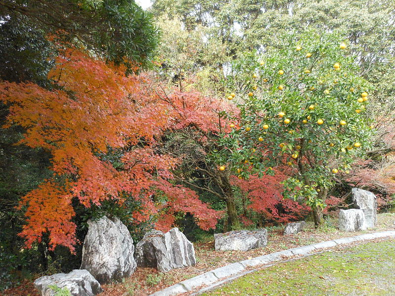 顕彰碑の廻りには「橘」(はっさく)がたわわに実っており、
