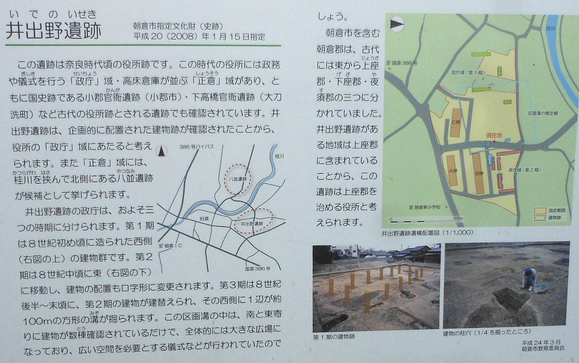 により上座郡・下座郡・夜須郡と名前が変わります。各郡には郡役所が設けられます。朝倉市宮野「井出野遺