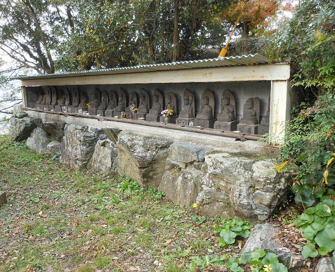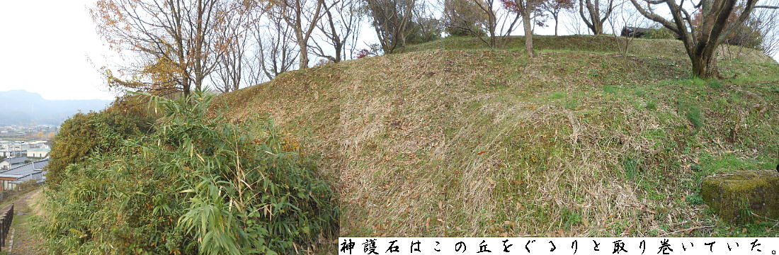 丘の頂上に東屋があって、神護石の説明もあるが、なんせ古ぼけていて写真には良く写らない。