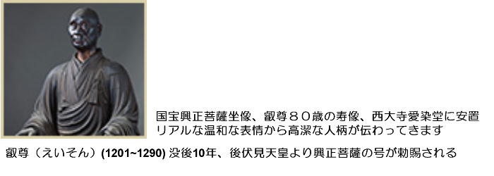 る。元来真面目で一途な性格の叡尊の座右の銘は「興法利生」、正しい仏法を盛り立てて人々を苦悩か