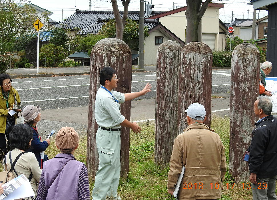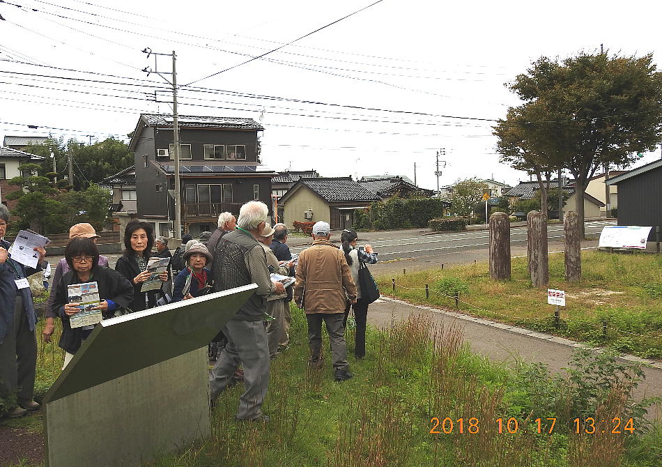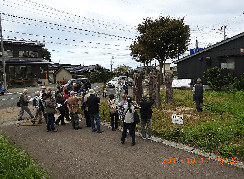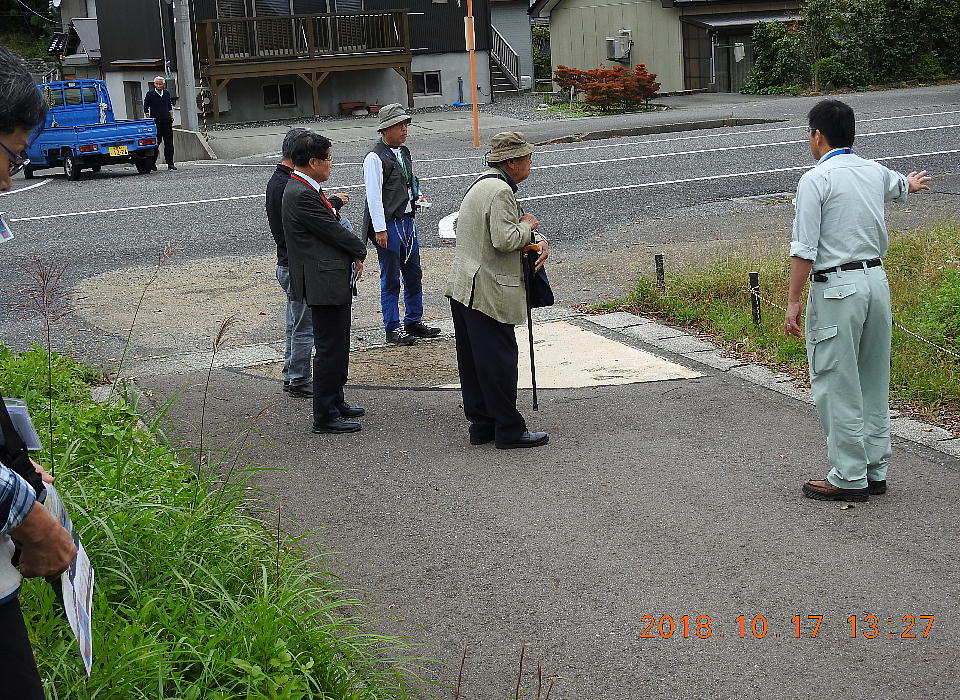 バスが着いたら、糸魚川市の教育委員会の方が待っていた。集まって皆で説明を聞く。