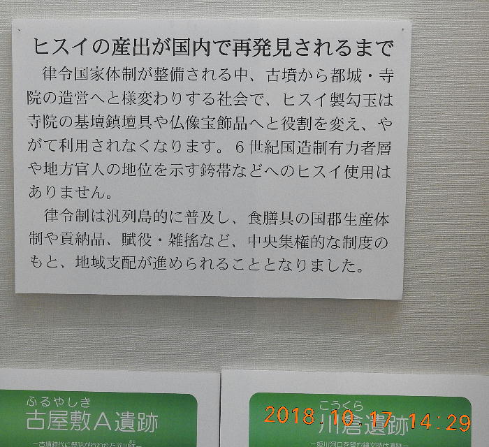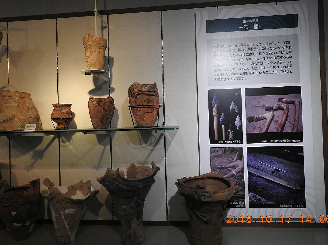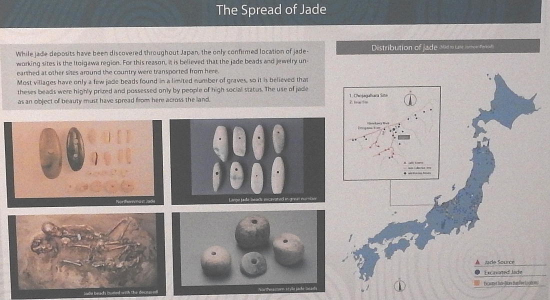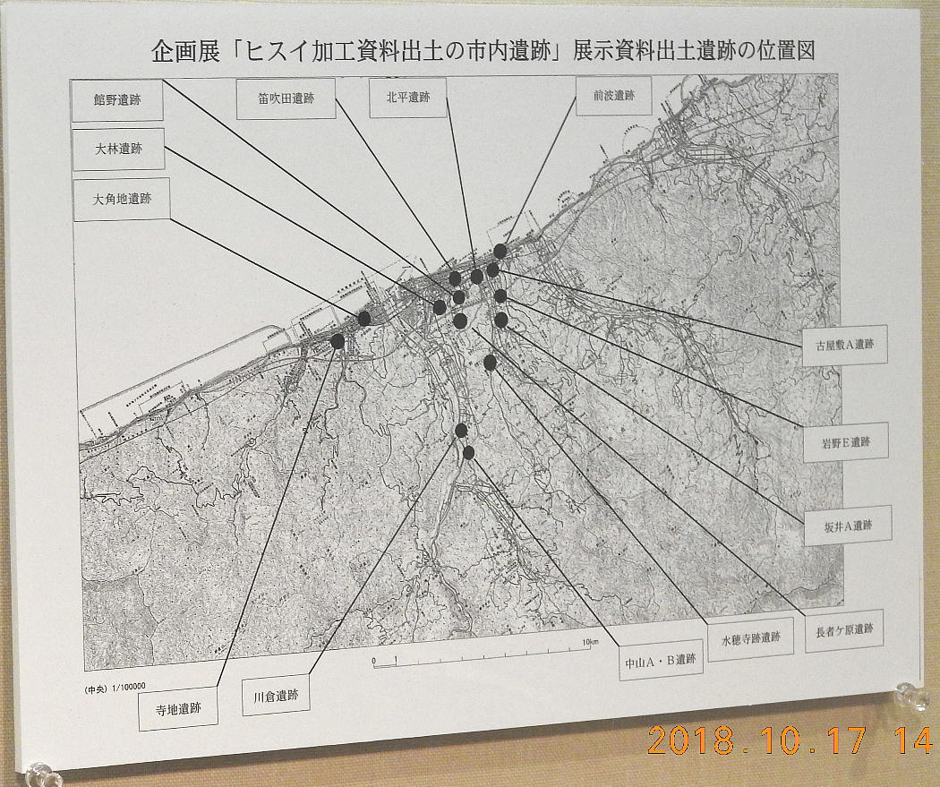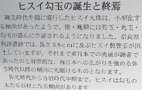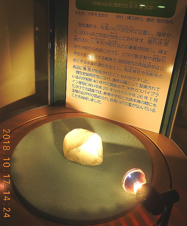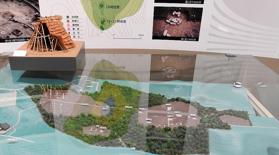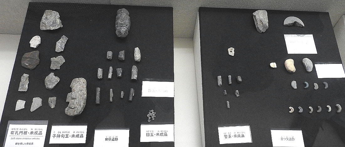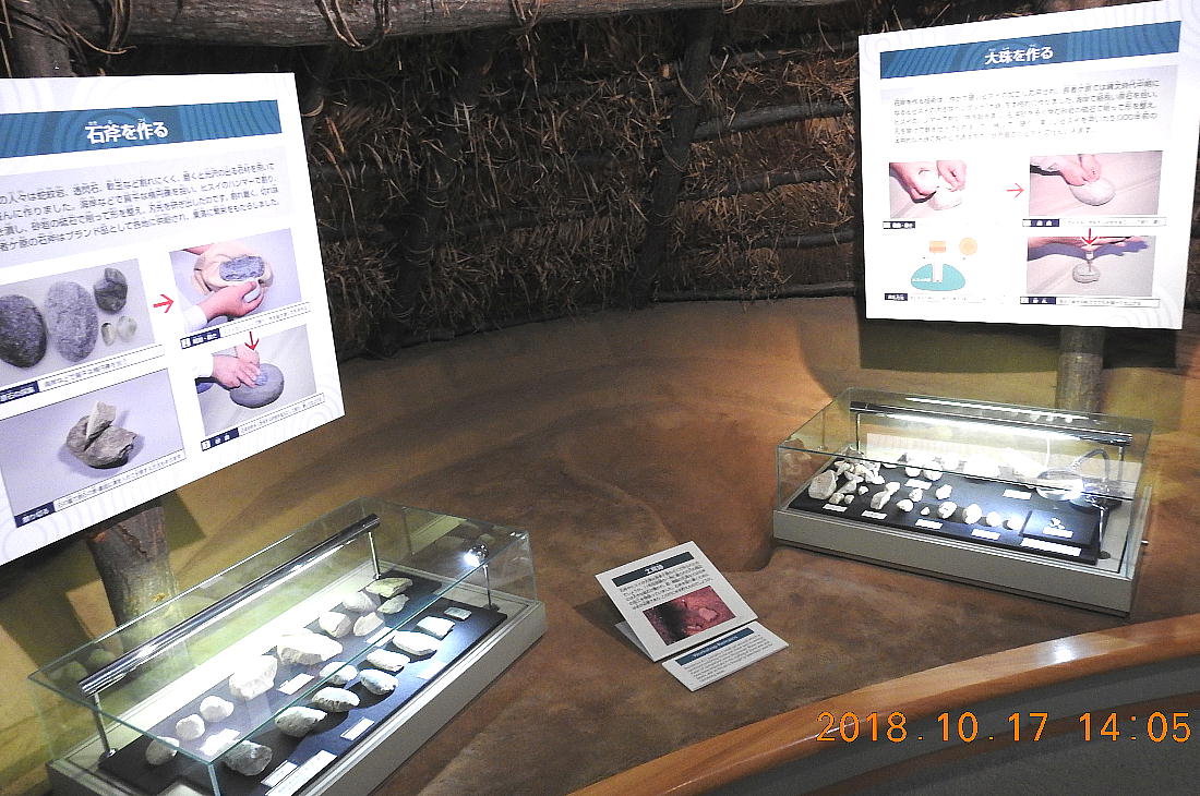 長者ケ原考古館・長者ケ原遺跡公園 糸魚川市HPより転載 国史跡に指定されている長者ケ原遺跡は、東京ドーム約3個分、13.6haもの面積を有しています。 この遺跡の中央に広がる縄文時代中期(5,000〜3,500年前)の大きな集落跡は、石斧やヒスイの 玉の生産・交易拠点としても知られています。これまでに発掘調査された面積は遺跡全体の約3 %、集落跡の10%に過ぎませんが、多くの住居跡や膨大な出土品によって遺跡の概要が把握され ました。これらの調査成果は、遺跡の保存に役立てるとともに、遺跡公園や考古館の整備にも活 かされました。遺跡公園には竪穴住居(たてあなじゅうきょ)などの建物が復元され、様々な体 験学習も行うことができます。また、考古館では縄文土器や石器、ヒスイの玉などが展示され、 歴史学習に適した環境を提供しています。<謝辞> このHPの赤枠で囲んだ解説資料は、令和2年2月22日(土曜日)に大阪府堺市で行われた 「歴史考古学の集い」令和2年2月度例会で講演された、大阪府四条畷歴史資料館・野島稔氏 の講演資料「祈りの縄文時代ー日本海の火焔土器と石文化ー」から転載しました。野島稔氏に 謝意を表します。