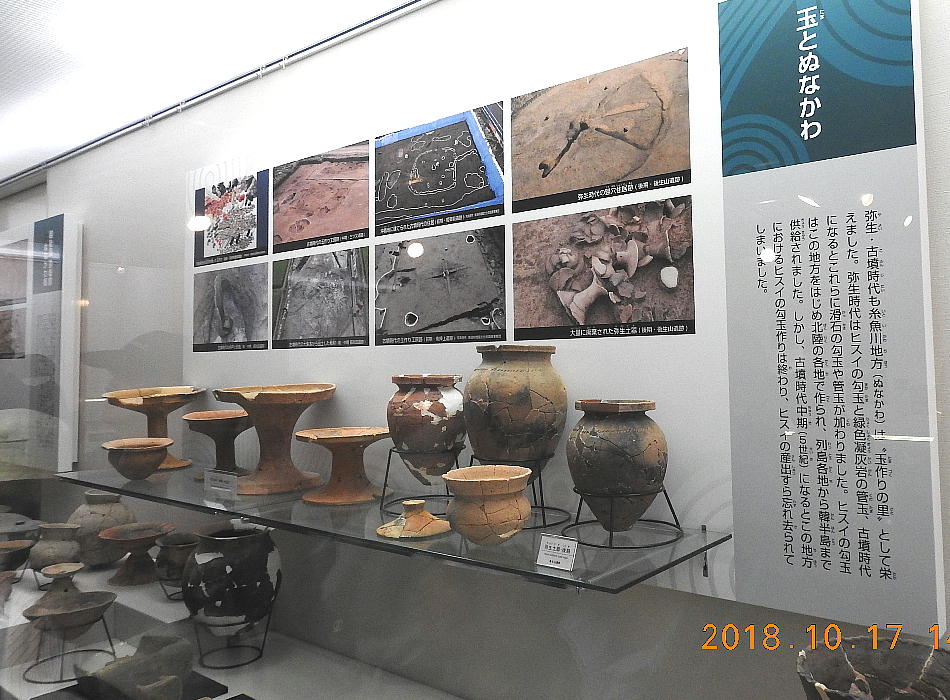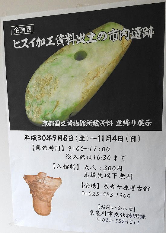 長者ケ原考古館(糸魚川市HPより) 長者ケ原考古館では、長者ケ原遺跡をはじめとした市内の遺跡からの出土品を展示しています。縄文 から江戸時代まで、糸魚川のあゆみをたどります。 展示室のご案内 ◆ガイダンスホール(映像放映) ヒスイの妖精が長者ケ原遺跡や発掘の様子をご案内する映像を放映します。椅子やテーブルを並べ て講義室としてもお使いいただけます。 ◆ 考古学サロン 考古学系の雑誌や各地の遺跡発掘調査報告書、郷土の資料などを読むことができます。椅子とテー ブルがありますので、ご休憩にもお使いください。 ◆常設展示室 「埋もれる大集落長者ケ原 〜ヒスイの故郷〜」 長者ケ原遺跡に関連する資料を展示しています。遺跡からの出土品をはじめ、当時を再現したジオ ラマや体験コーナーなど、縄文時代をより身近に感じていただけるコーナーもございます。 長者ケ原遺跡の発見と調査/長者ケ原1500年ものがたり/集落のくらし/祈り/生活を支えた道具 玉と斧/翡翠の広がり/体験コーナー(土器と石器の仕分け、土器パズル、縄文ファッション) 常設展示室全体生活を支えた道具住居跡入口ジオラマ ◆企画展示室 「掘り起こされた奴奈川」 縄文時代に玉つくりの里としてはじまった私たちの郷ヌナカワはどのように移り変わってきたので しょうか。私たちの足元から掘り起こされた、人々のくらしの痕跡を紹介します。 また、最新の発掘調査の結果や資料も随時展示しています。玉作りの始まり/縄文土器の世界/玉と ヌナカワ 越後国・頸城郡・ぬなかわ郷/館と城/書き残された文字/海と山の回廊 入館料 ○長者ケ原考古館入館券 ・一般…300円 ・高校生以下…無料 ○フォッサマグナミュージアムとの共通入館券 ・一般…600円 ・高校生以下…無料 所在地・アクセス 新潟県糸魚川市大字一ノ宮1383 TEL:025-553-1900 FAX:025-553-1986 ・北陸自動車道糸魚川ICから車で約10分 ・糸魚川駅から車で約10分 ・バス停「糸魚川駅アルプス口」から「美山公園・博物館線」乗車 約10分、「長者ケ原考古館前」 下車 運賃…おとな 100円 こども 50円 お問い合わせ先 長者ケ原考古館/長者ケ原遺跡公園 所在地/〒941-0056 新潟県糸魚川市一ノ宮1383 電話番号/ 025-553-1900 FAX/025-553-1986 E-mail/ bunka@city.itoigawa.lg.jp