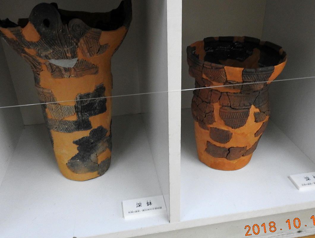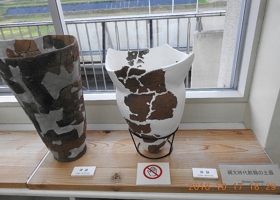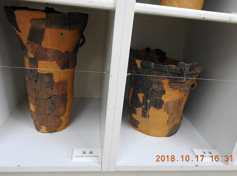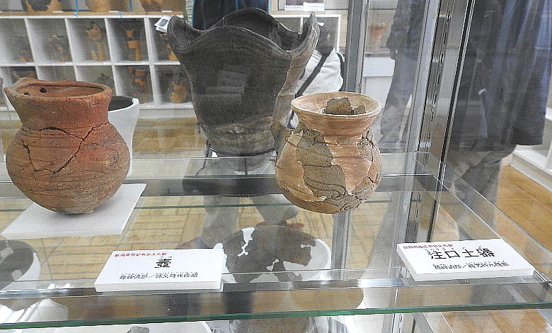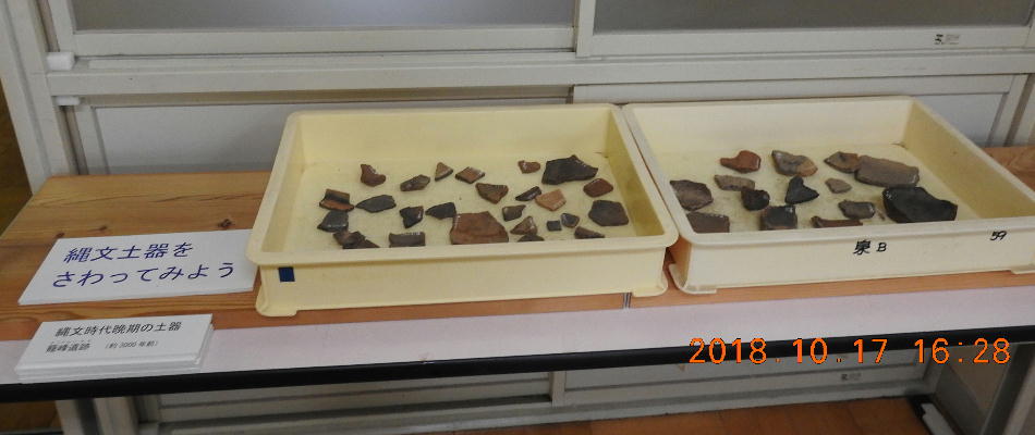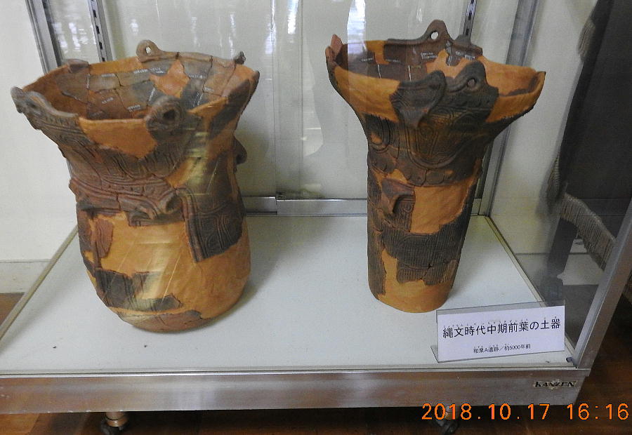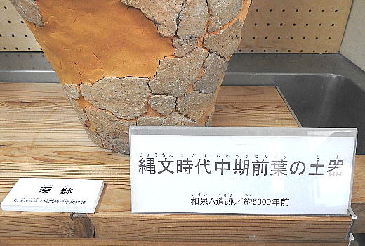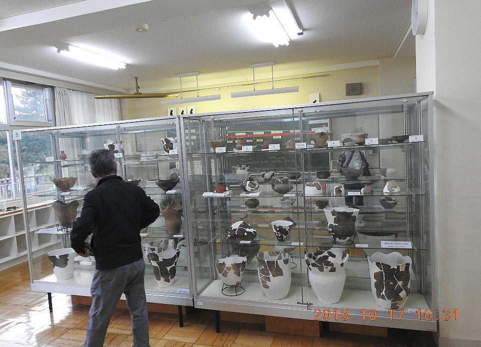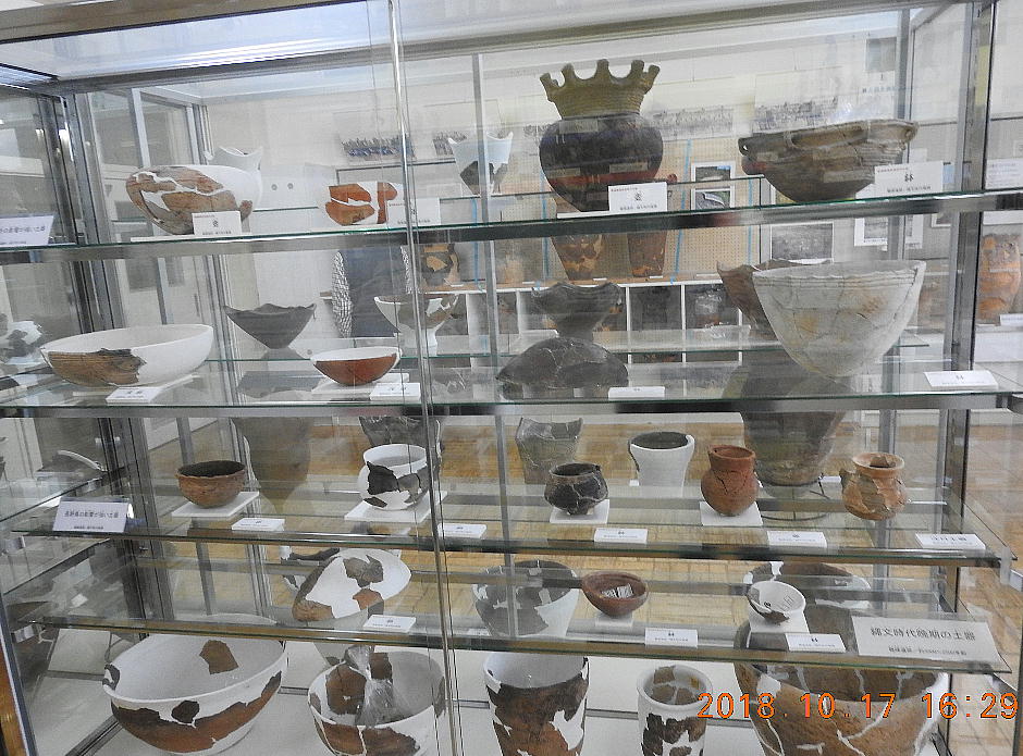 予想以上に出土品が多い。所狭しと並んでいる。まさしくこの地域が縄文人の生活圏だ ったのが理解できる。近畿圏からの土器もあるというのは驚きだ。縄文人の移動範囲は 我々の想像以上に広がっていたのだろう。