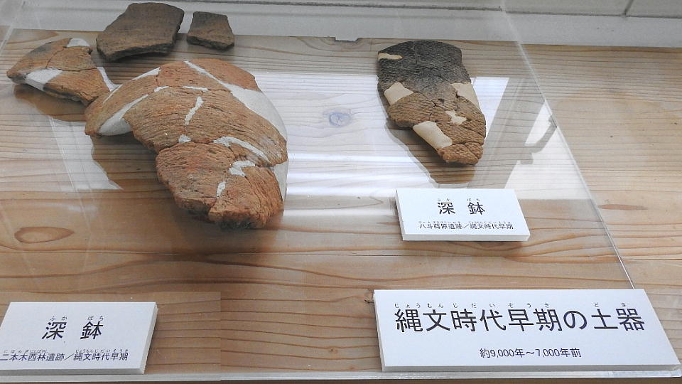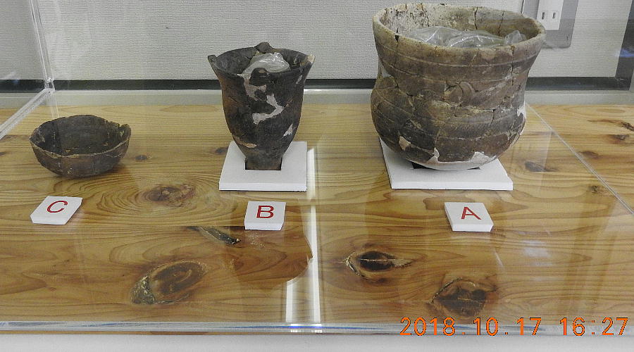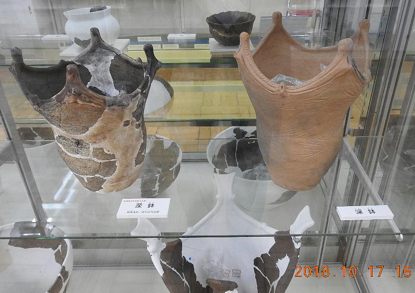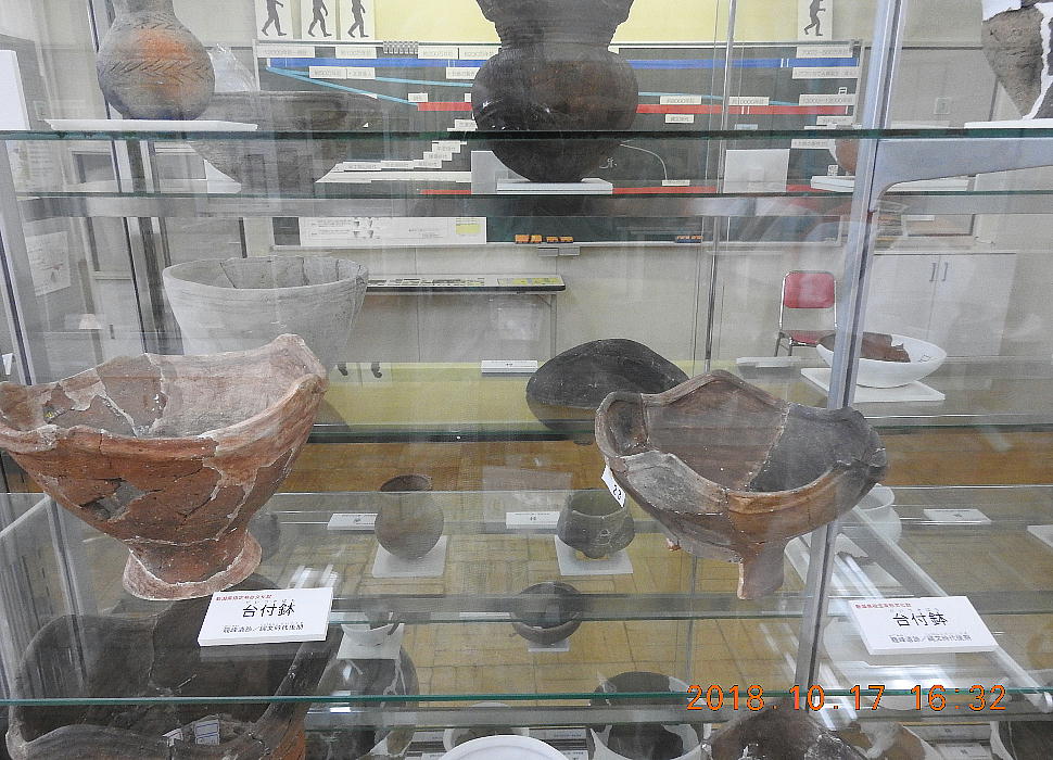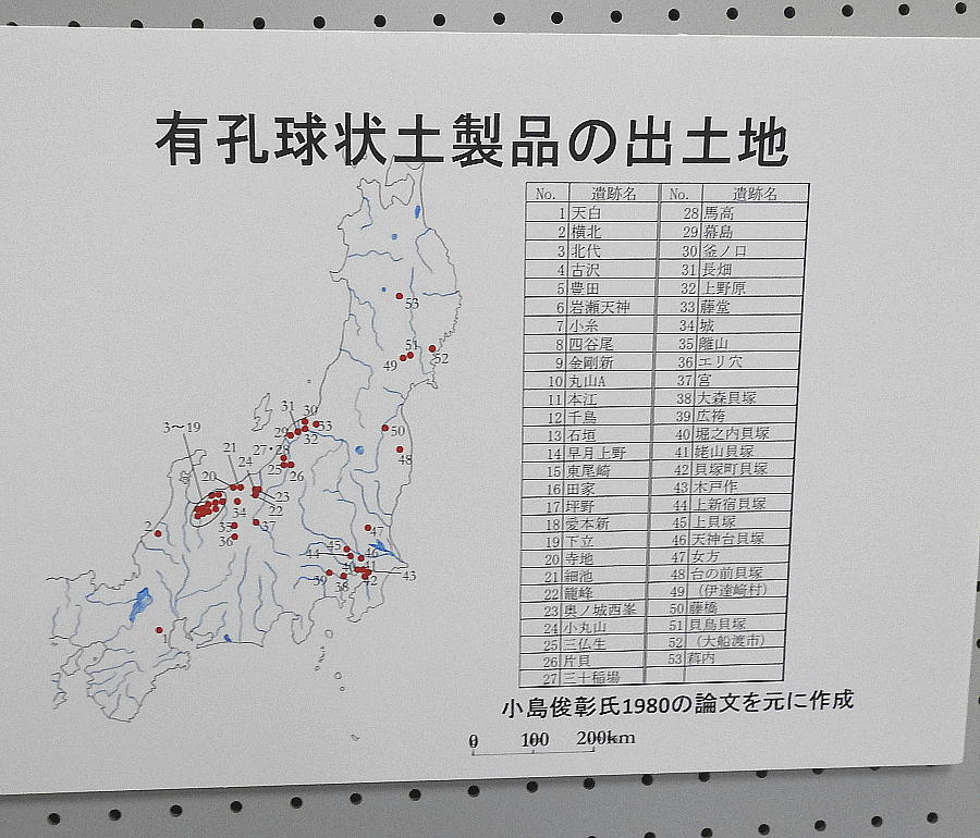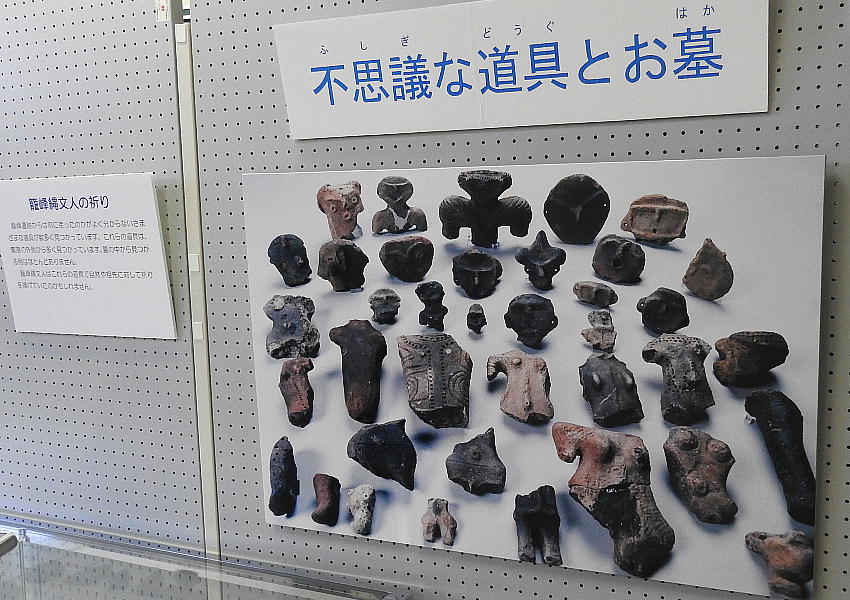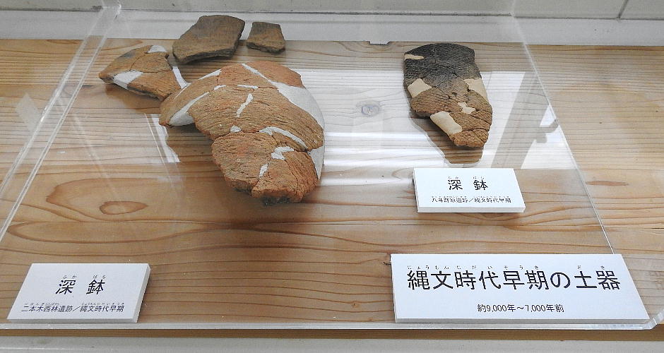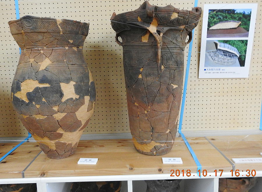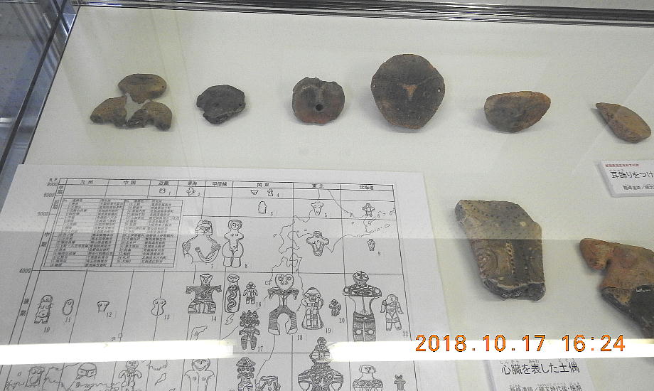 予想以上に出土品が多い。所狭しと並んでいる。まさしくこの地域が縄文人の生活圏だ ったのが理解できる。近畿圏からの土器もあるというのは驚きだ。縄文人の移動範囲は 我々の想像以上に広がっていたのだろう。