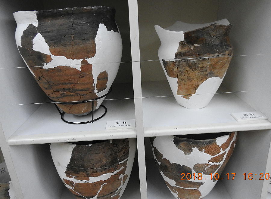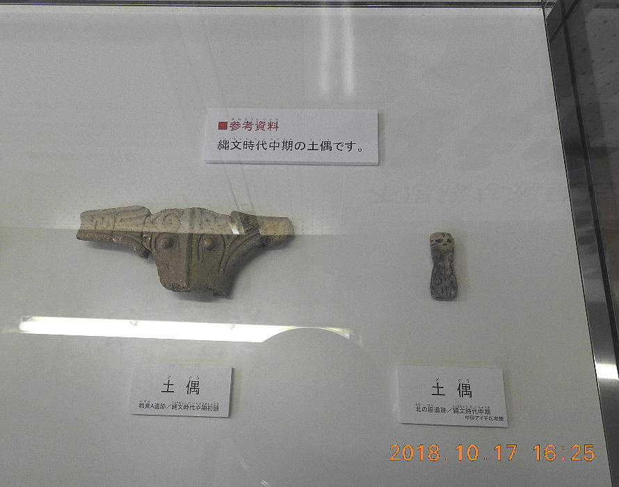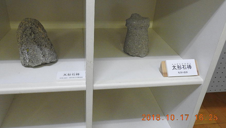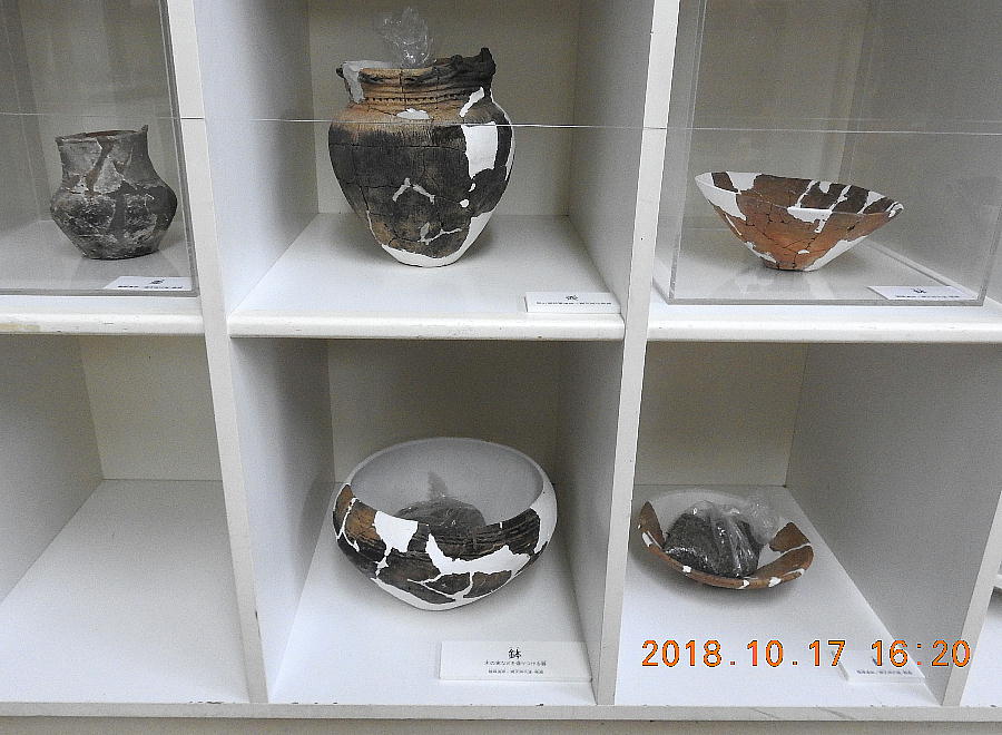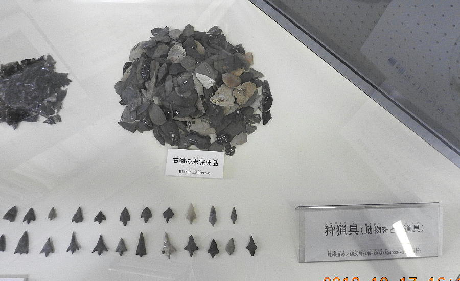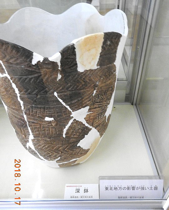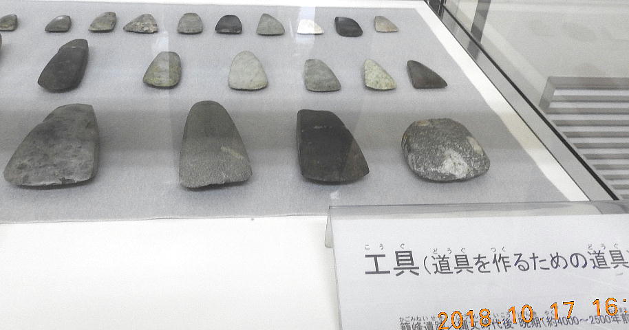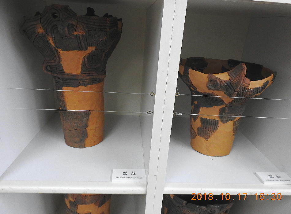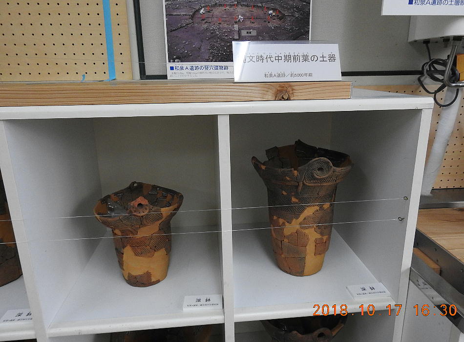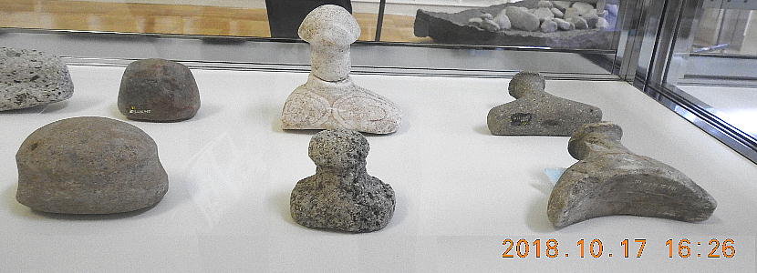 予想以上に出土品が多い。所狭しと並んでいる。まさしくこの地域が縄文人の生活圏だ ったのが理解できる。近畿圏からの土器もあるというのは驚きだ。縄文人の移動範囲は 我々の想像以上に広がっていたのだろう。