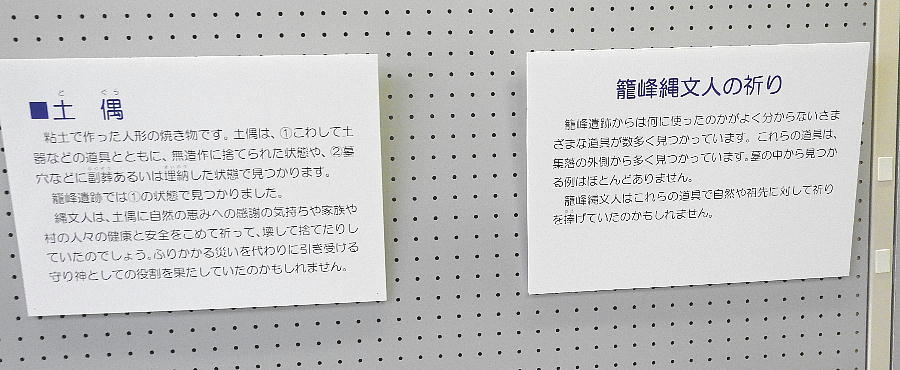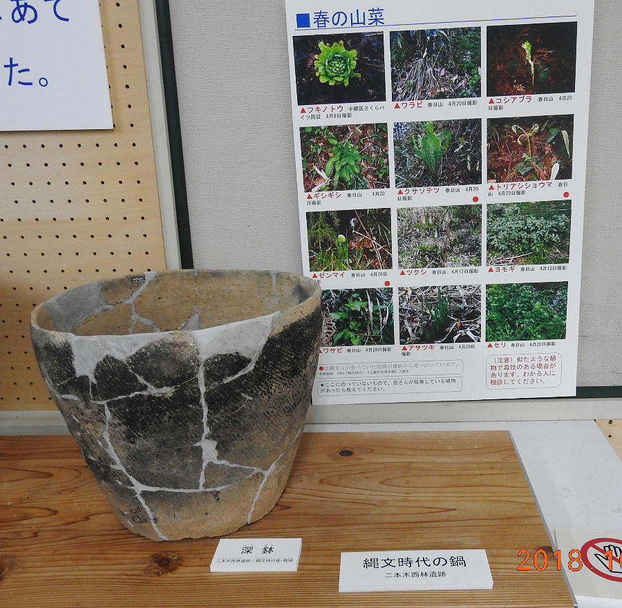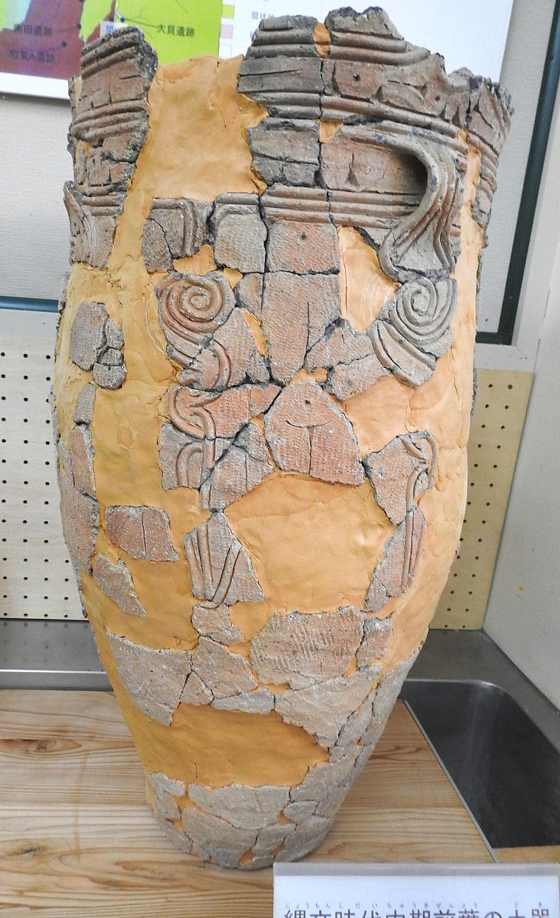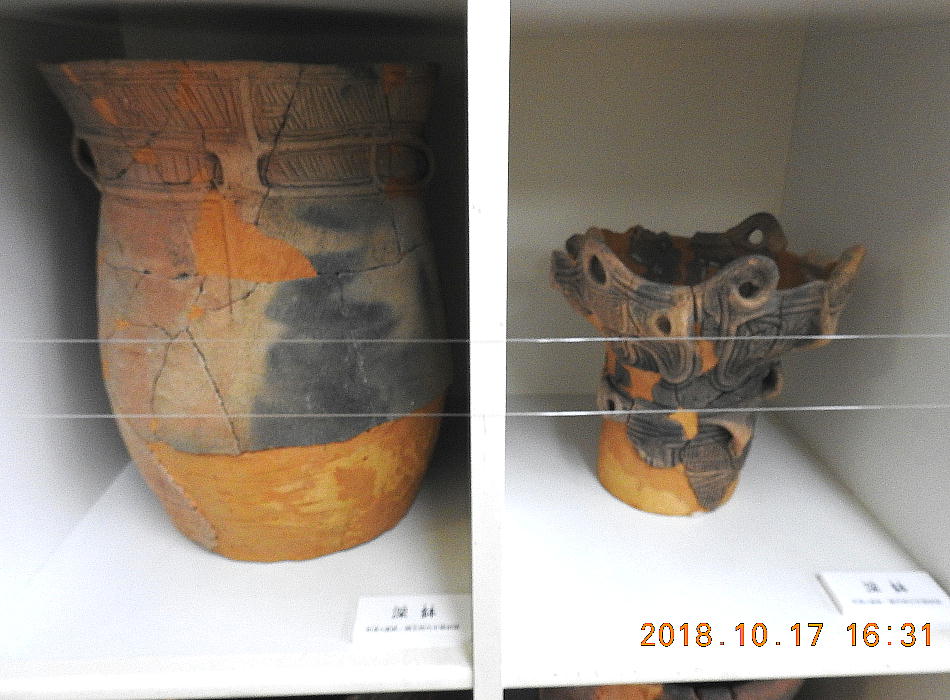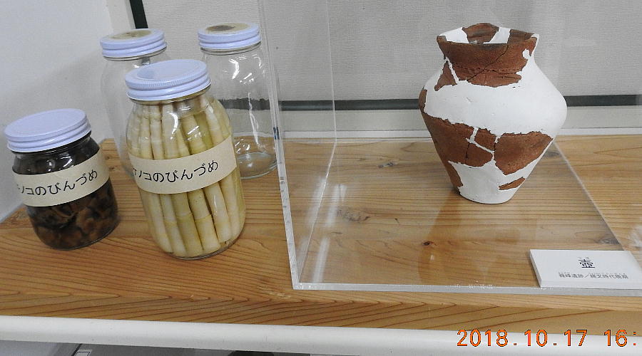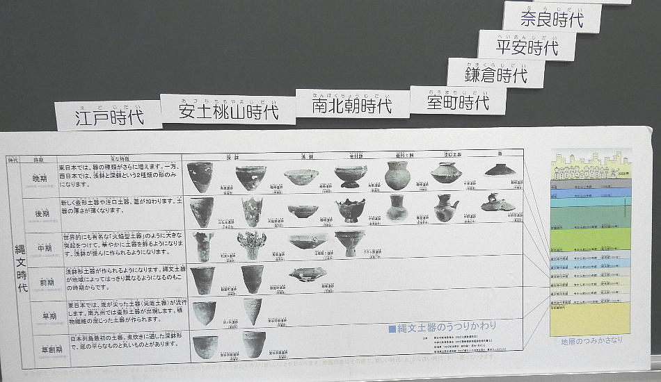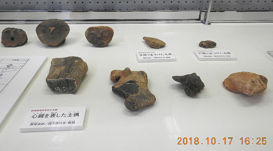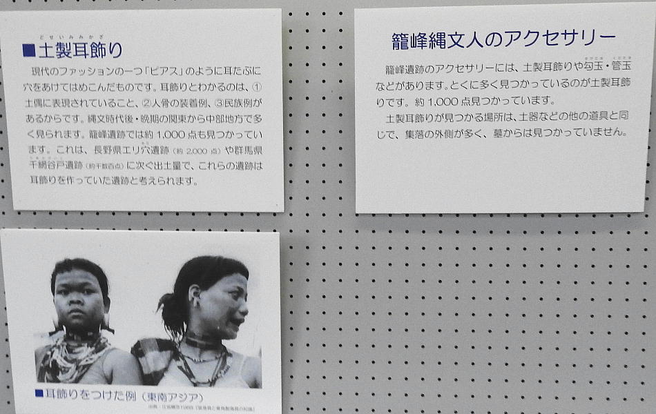予想以上に出土品が多い。所狭しと並んでいる。まさしくこの地域が縄文人の生活圏だ ったのが理解できる。近畿圏からの土器もあるというのは驚きだ。縄文人の移動範囲は 我々の想像以上に広がっていたのだろう。