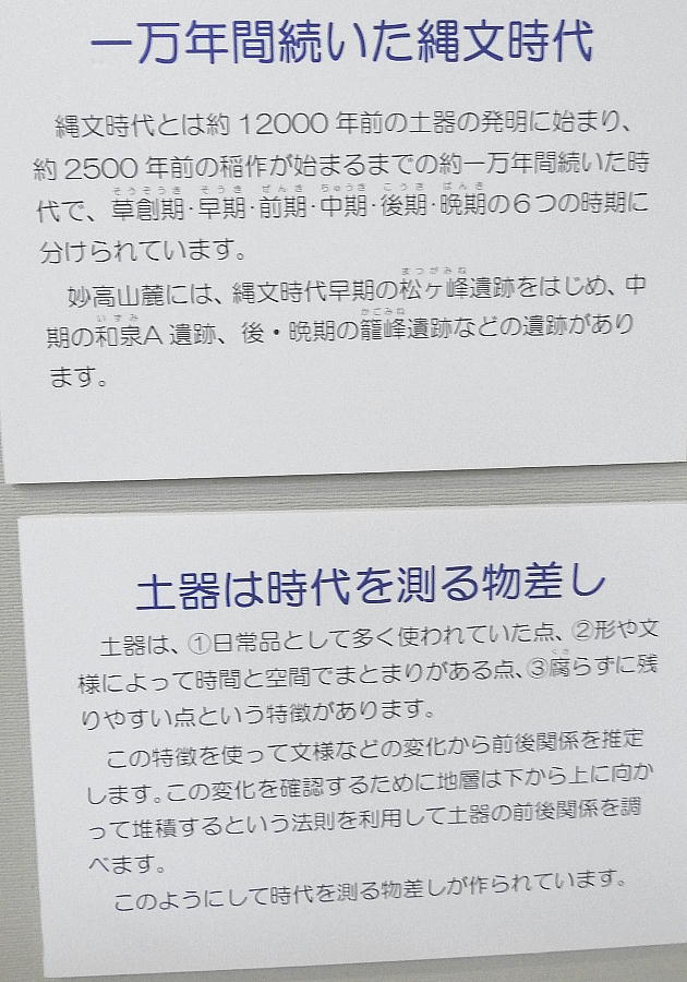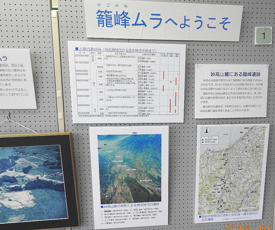 上越市中郷区には、県指定史跡「籠峰遺跡」をはじめとした、数多くの縄文時代の遺跡が 見つかっている。上越市片貝縄文資料館は、四季折々に姿を変える美しい妙高山を眺めな がら縄文人のくらしぶりに思いを馳せ、古代ロマンを体感できる資料館である。![]()