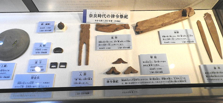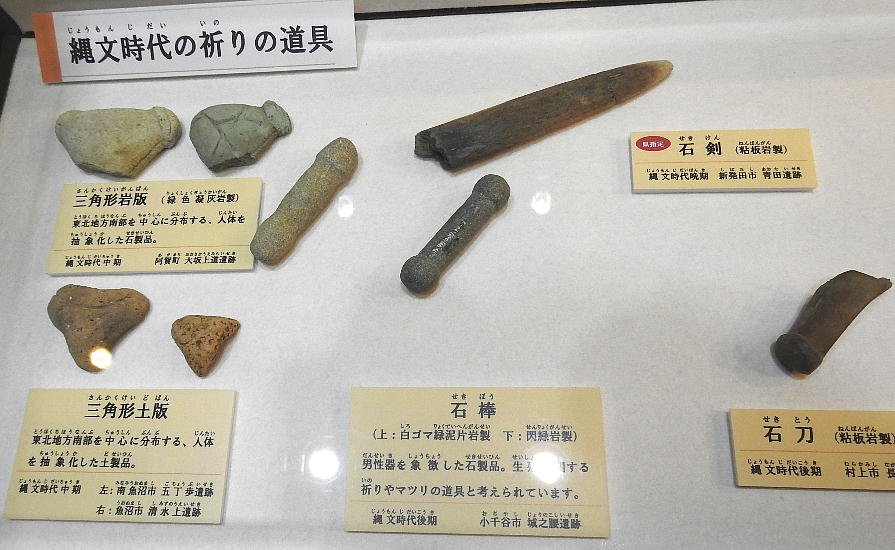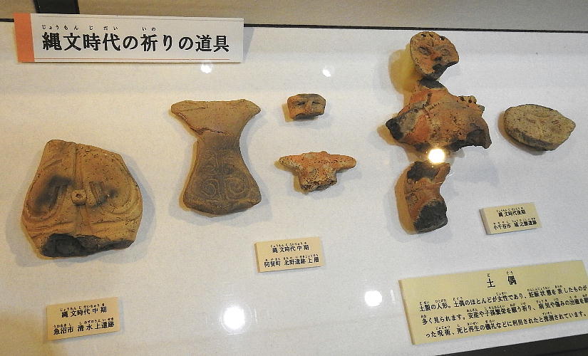 新潟県埋蔵文化財センター <同センターHPより転載> 展示メニュー 1階展示室 1 県内遺跡出土品 <旧石器時代〜江戸時代> 2 縄文時代のアクセサリー 3 縄文時代の土偶・縄文時代の祈り 4 縄文時代の漆工芸 5 縄文時代の木工 6 火焔型土器・六反田南遺跡の縄文土器 台付鉢 7 縄文時代の編物敷土坑 8 縄文時代の掘立柱建物の柱 9 縄文時代の食べ物 10 鎌倉時代の丸木舟 11 鎌倉・室町時代の信仰 12 鎌倉・室町時代の流通 13 銭の種類・室町時代の物価 14 発掘速報 15 北野遺跡の土層断面、六反田南遺跡の石棒 音声ガイダンス・クイズコーナー 2階の展示 少年少女考古学教室 展示会 1 県内出土品(旧石器〜江戸時代) このコーナーは、旧石器時代から江戸時代までの土器や石器を時代別に概観することが できます。土器は、時代ごとに特色あるものを展示しており、その変遷を知ることがで きます。また、壁には解説パネルがあり、各時代の特徴を学べます。 手前の展示ケースには、それぞれの時代を特徴づける道具や装飾品などを展示していま す。それぞれの時代に生きた人々の生活の息吹を感じ取ってみてください。 旧石器時代 <旧石器時代の石器> 縄文時代 <縄文時代の土器> 縄文時代時代の道具> <縄文時代の斧柄・石斧・石斧工程品> 弥生時代 <弥生時代の土器> <弥生時代の勾玉・管玉と工程品> 古墳時代 <古墳時代の土器> <マツリの道具> 飛鳥時代・奈良時代・平安時代 <奈良時代・平安時代の土器・木器> <平安時代の土器・陶磁器・木器> <奈良・平安時代の道具> <奈良時代〜平安時代初めの唐三彩> <奈良時代の硯> 鎌倉時代・室町時代 <鎌倉時代・室町時代の土器・陶磁器・鉄器> <鎌倉時代〜明治時代初めの道具> 安土桃山時代・江戸時代 <安土桃山時代・江戸時代の土器・陶磁器> 2 縄文時代のアクセサリー <ヒスイ製敲石・太珠・剥片・原石、滑石性耳飾り、土製耳飾りなど〉 3 縄文時代の土偶・縄文時代の祈り 〈土偶・石棒・石剣など〉 4 縄文時代の漆工芸 〈赤漆塗り糸玉・腕輪・竪櫛・漆容器など〉 5 縄文時代の木工 〈新発田市青田遺跡出土の把手・横槌。筌状編み物など〉 6 火焔型土器・縄文土器 台付鉢 〈火焔型土器と糸魚川市六反田南遺跡の台付鉢〉 7 縄文時代の編物敷土坑 〈胎内市野地遺跡の編物敷土坑〉 8 縄文時代の掘立柱建物の柱 〈新発田市青田遺跡から出土した掘立柱建物の柱〉 9 縄文時代の食べ物 〈縄文時代の遺跡から出土した木の実・獣骨・魚骨など〉 10 鎌倉時代の丸木舟 〈阿賀野市石船戸東遺跡の丸木舟〉 11 鎌倉・室町時代の信仰 〈上越市木崎山遺跡の地鎮具ほか〉 12 鎌倉・室町時代の流通 <柏崎市東原町の出土銭と珠洲焼壺ほか> 13 銭の種類・室町時代の物価 <柏崎市東原町遺跡で出土した銭の種類と室町時代の物価> 14 発掘速報 <南魚沼市余川中道遺跡出土品(令和2年9月30日より展示)> ※「発掘速報」コーナーは、年間3〜4回程度、展示替えを行いますので、 間限定の展示となります。 15 北野遺跡の土層断面、六反田南遺跡の石棒 <阿賀町北野遺跡の土層剥ぎ取り断面〉 <六反田南遺跡の石棒〉 新潟県埋蔵文化財センター Niigata Prefecture Archaeological Research Center 〒956-0845 新潟県新潟市秋葉区金津93番地1 TEL:0250-25-3981 指定管理者 公益財団法人 新潟県埋蔵文化財調査事業団