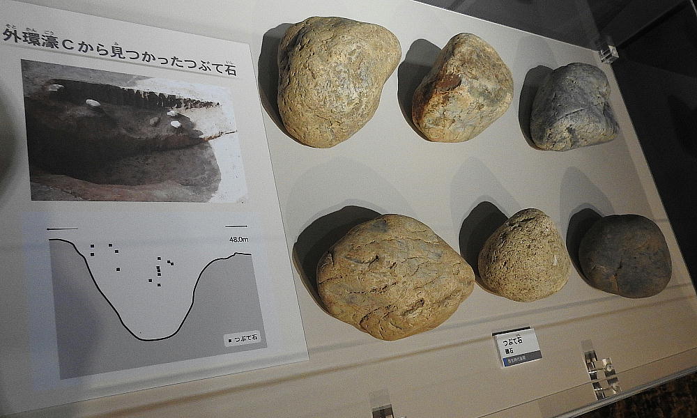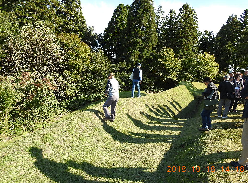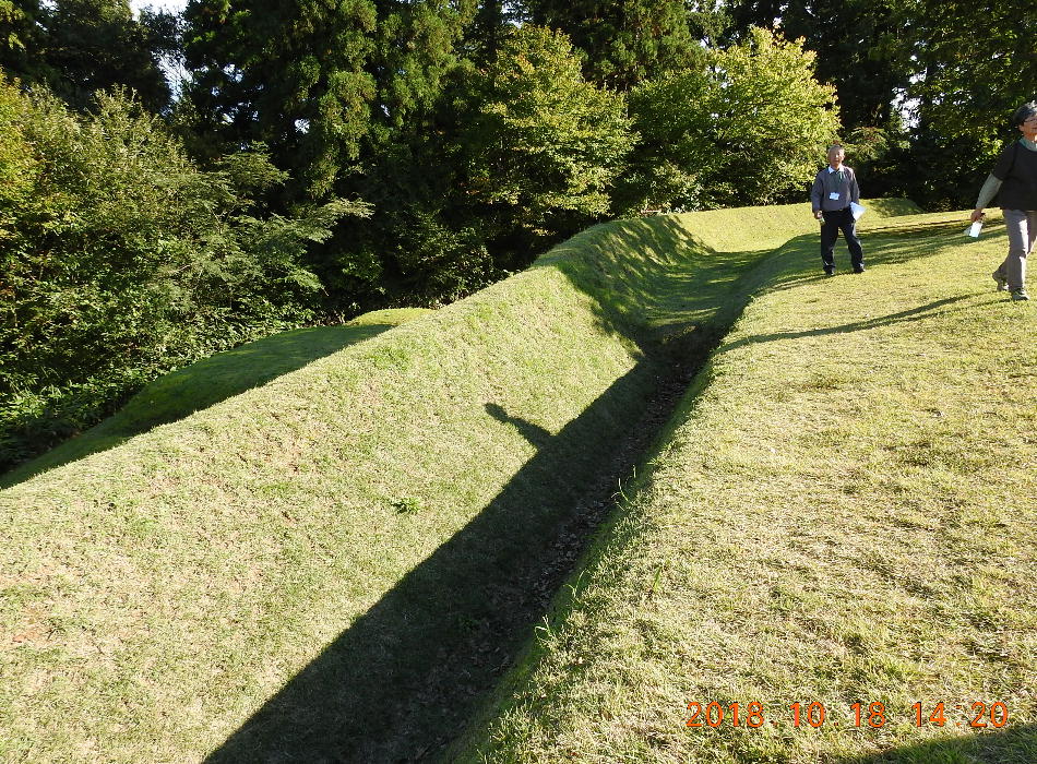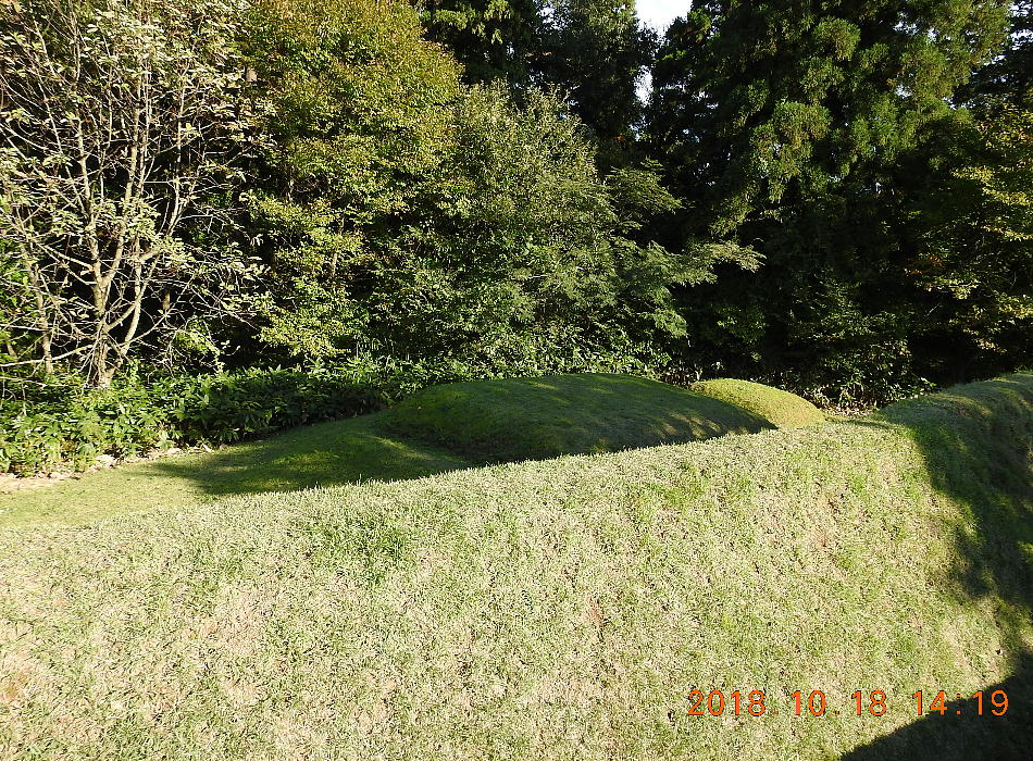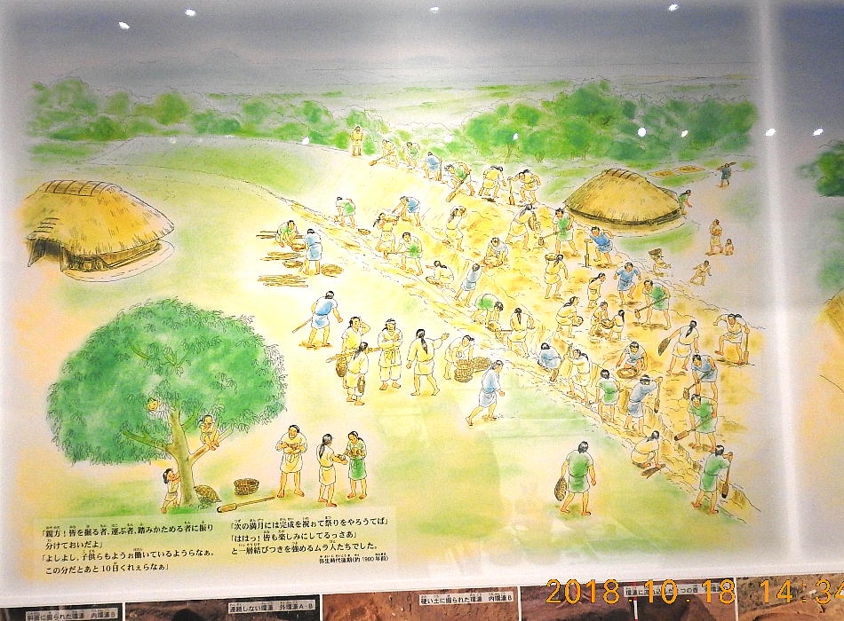遺構 環濠 断続的ではあるが、二重で断面がV字型。最大3メートル、深さ2メートル。環濠の外 側に掘削した土砂を土塁状に盛って造成されたと考えられる。