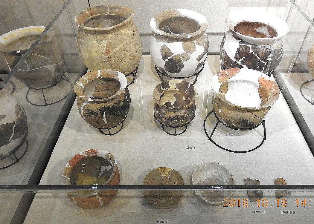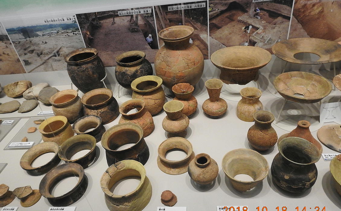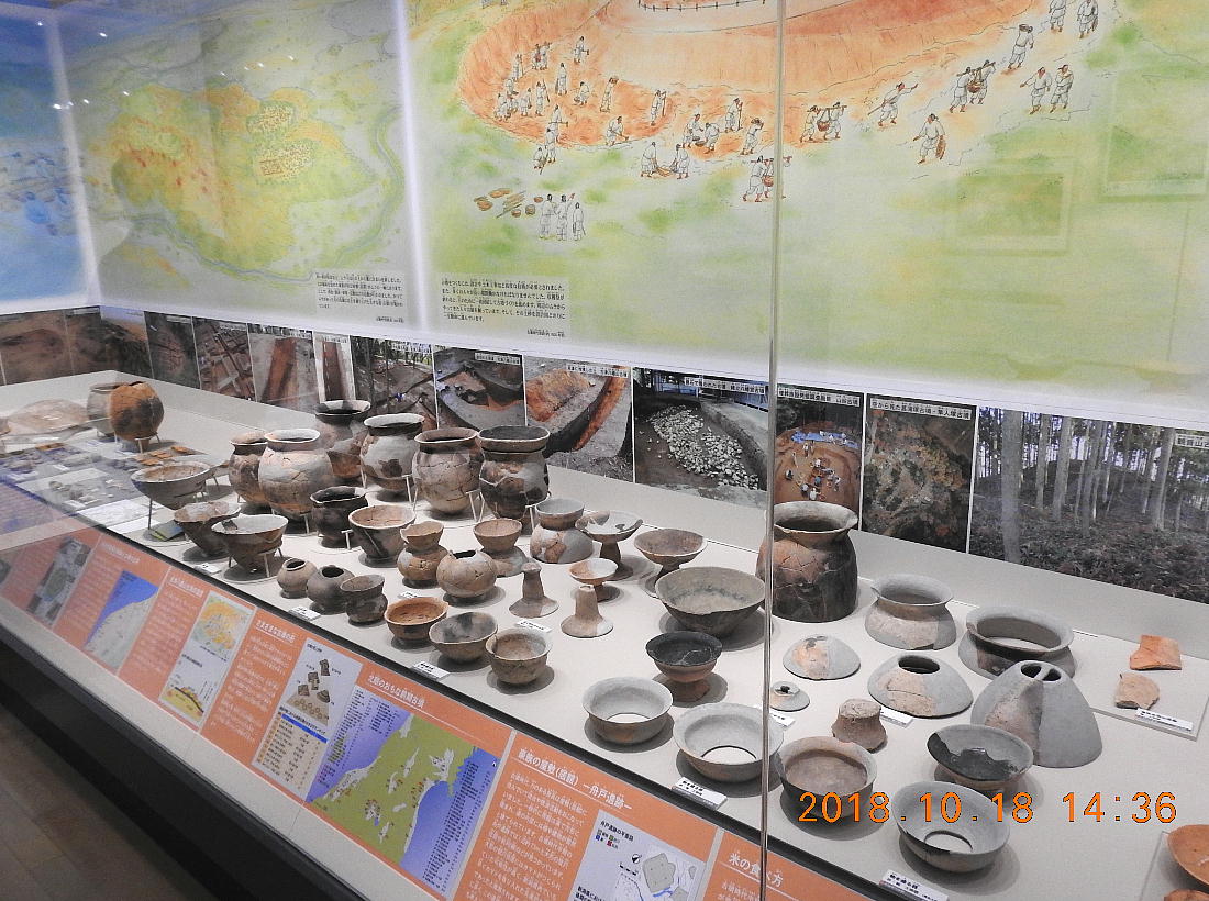 古津八幡山遺跡・資料館 (弥生の丘展示館) 2006年度から2009年度にかけて遺跡の復元整備工事が行われ、史跡公園として公開されて いる。2012年春にはガイダンス施設「弥生の丘展示館」がオープンし、出土品の展示・解 説や遺跡にまつわる各種展示、体験イベントなどが行われる拠点となっている。弥生の丘 展示館から遺跡にかけては遊歩道が整備されている。