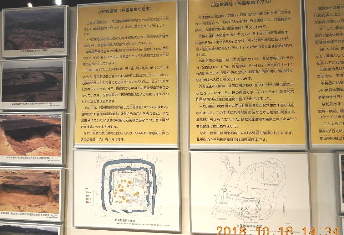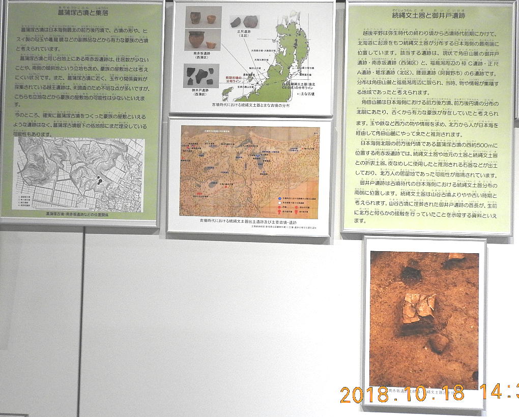 前方後方形周溝墓は内側の環濠に囲まれた丘陵頂部に位置します。出土した遺物は、北陸系・ 東北系・両者折衷の在地系の3系統にわたり、日本海や阿賀野川を介して北陸地方中西部・東北 ・会津地方とつながりがあったことが分かります。