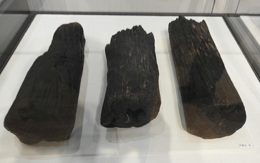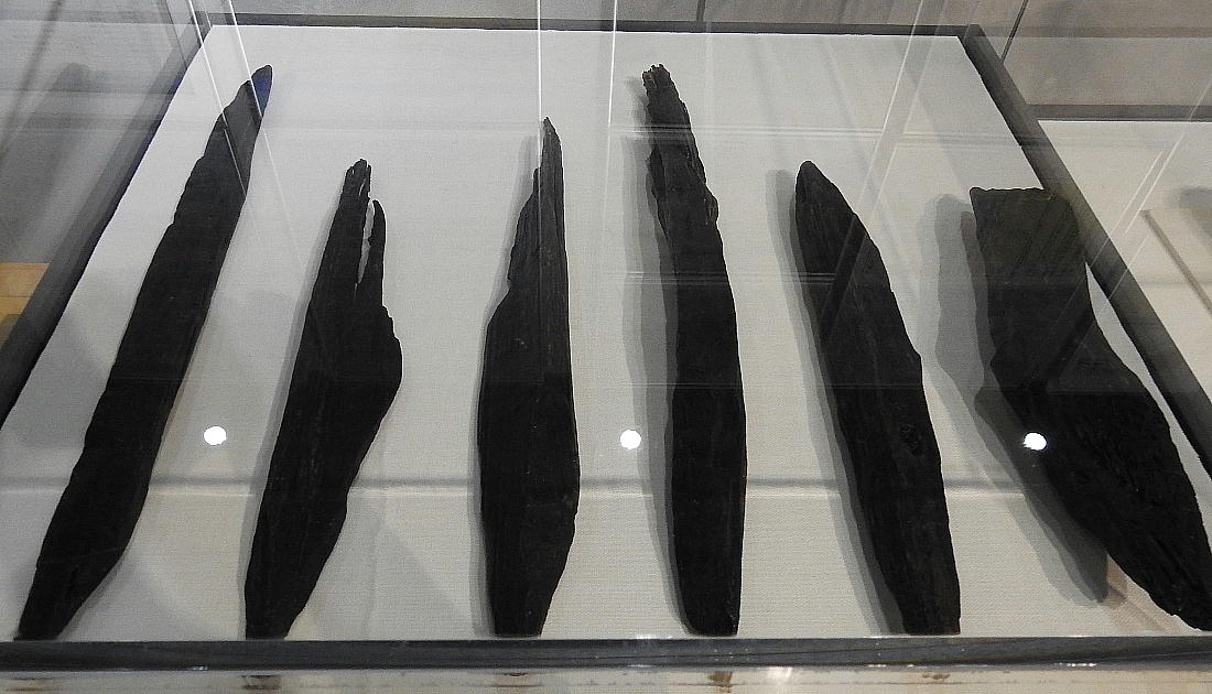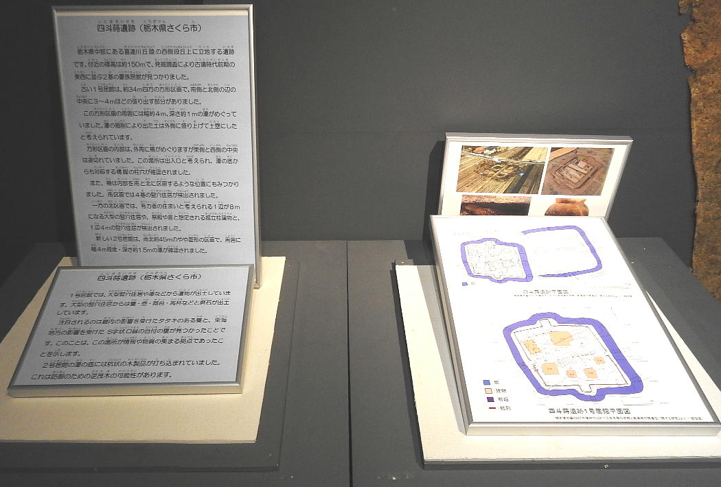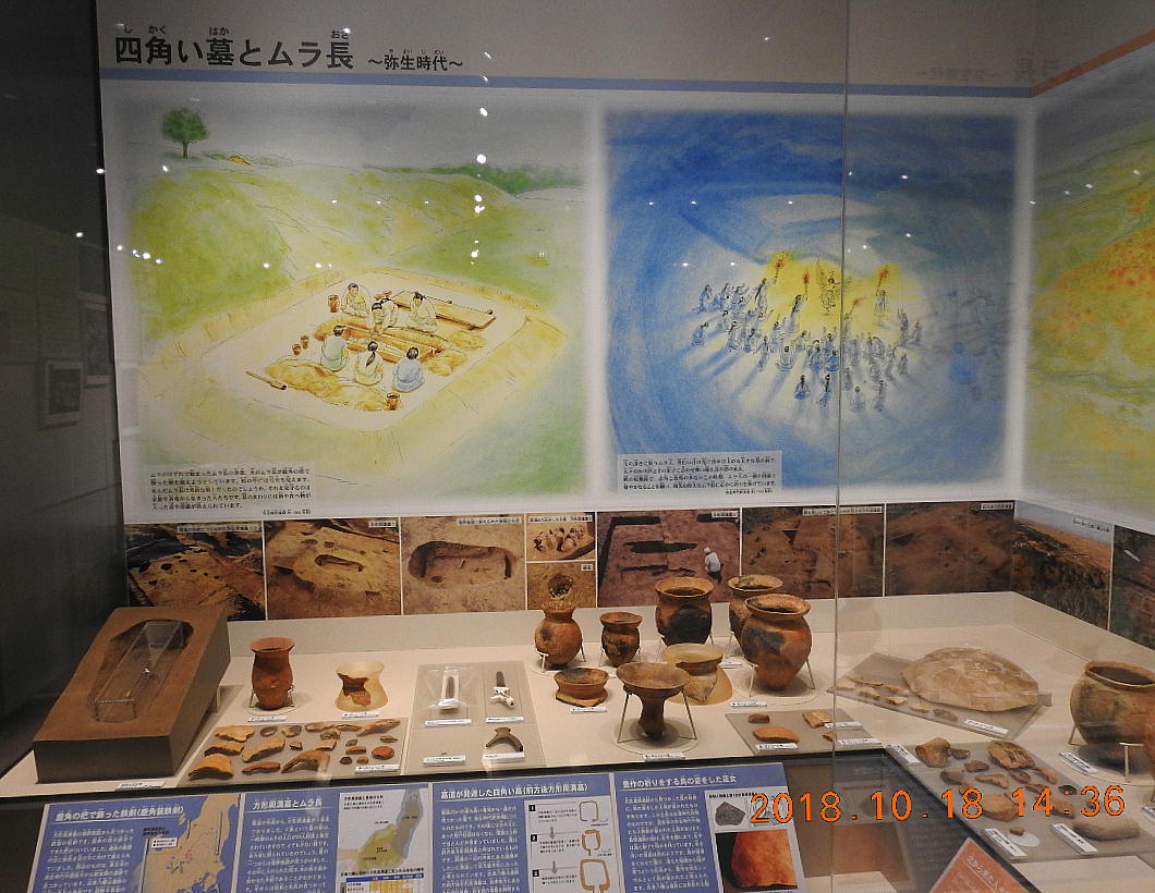 環濠は断続的に二重に配置され、深さは2メートル近いところもあります。方形周溝墓は環濠の 外側につくられており、主体部である棺跡からは鹿角装鉄剣(鹿の角の柄が付いた鉄剣)や、 石鏃(やじり)が出土しました。
