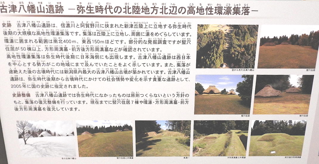 私はここも二度目である。前回訪れたのは2013年だからもう7年前だ。新潟の友人、渡辺 君を訪ねた時に案内してもらったのだが、雪の中だった。その模様は以下にあります。 2013年古津八幡山遺跡訪問 またその時入手したガイダンスの案内パンフレットは以下です。 古津八幡山遺跡ガイドブック 久々に根詰めてPC作業をやると、肩は凝るし目はかすむ。いささか疲れたので、遺跡の 解説は上のHPに譲って、手を抜くことにします。ご勘弁を。