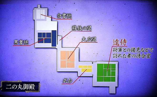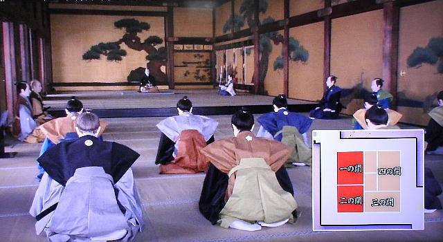 徳川家康の将軍宣下に伴う賀儀と、徳川慶喜の大政奉還が行われ、江戸幕府の始まりと終わりの場所でもある。また、後の近代におい ては大正天皇即位の儀式である即位礼の饗宴場として使用された場所となった。![]()