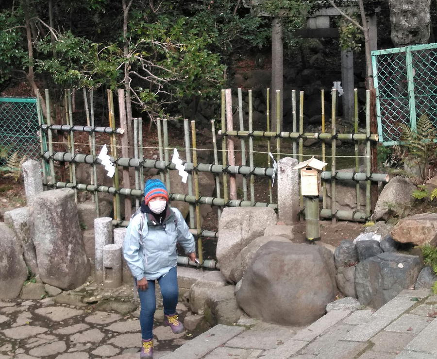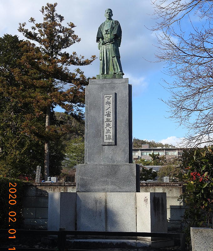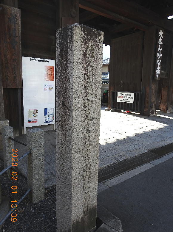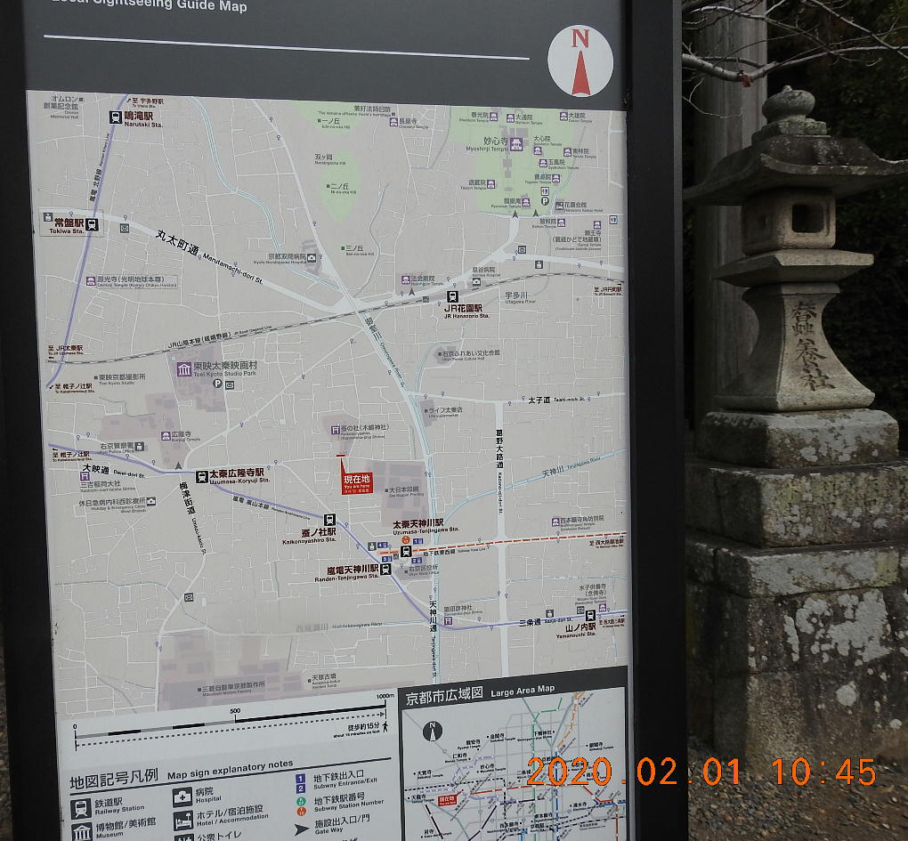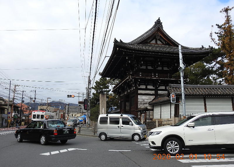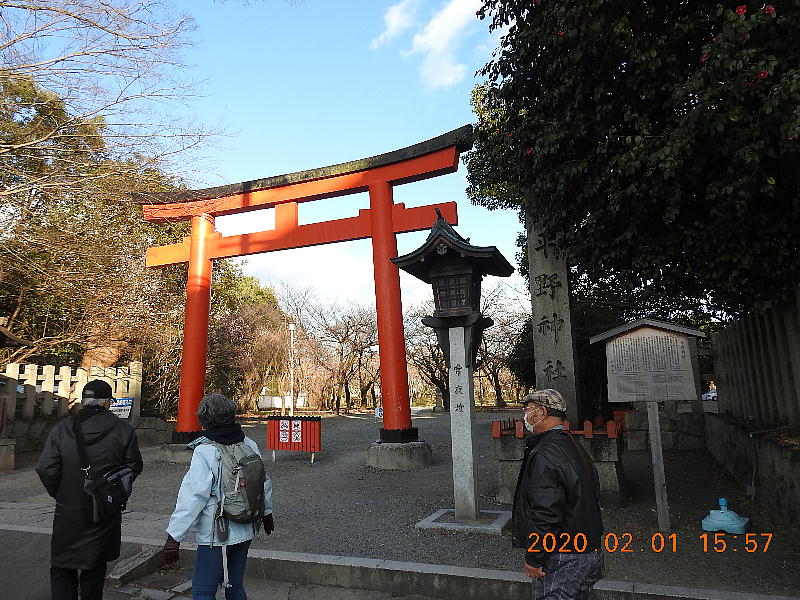 阪急京都線「四条大宮駅」に集合して、嵐電「大宮駅」前にて集合写真。何やら中国の武漢から怪しいウィルスが飛んできたという ので全員マスク姿で集合。河内さんは、コンビニへ行ったがマスクは売り切れだったそうだ。この時は、まさかこのウィルスがあん な大騒動を引き起こすとは思いもしなかった。(このHPは、2020.4.10に制作しました。この時点で武漢熱による死者119人。)![]()