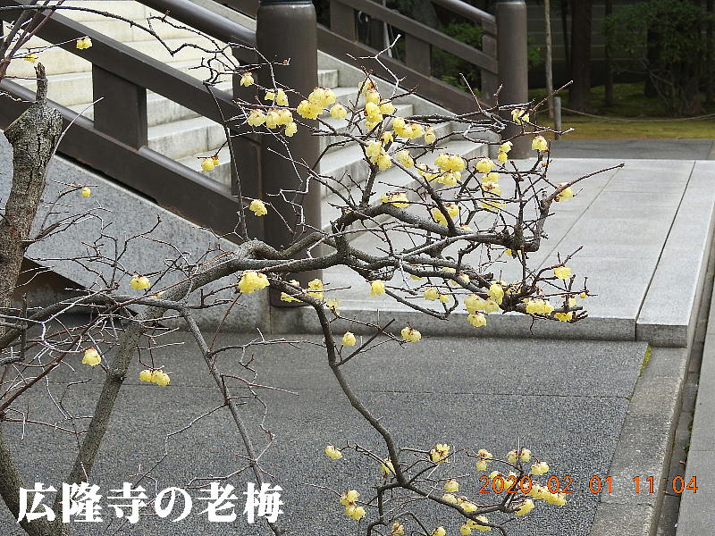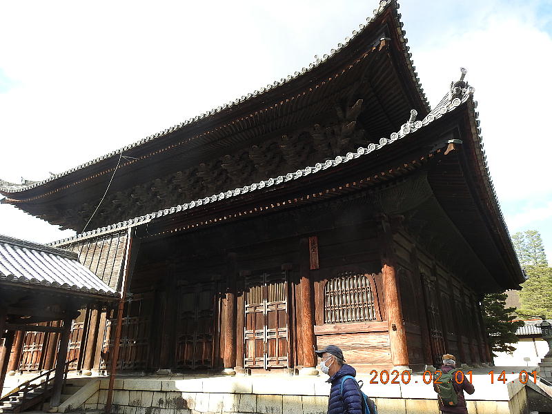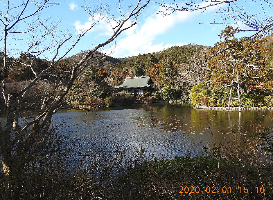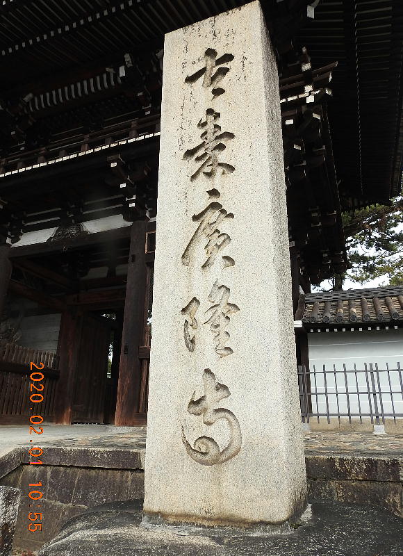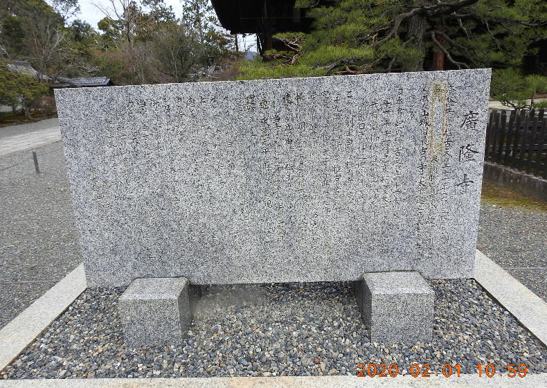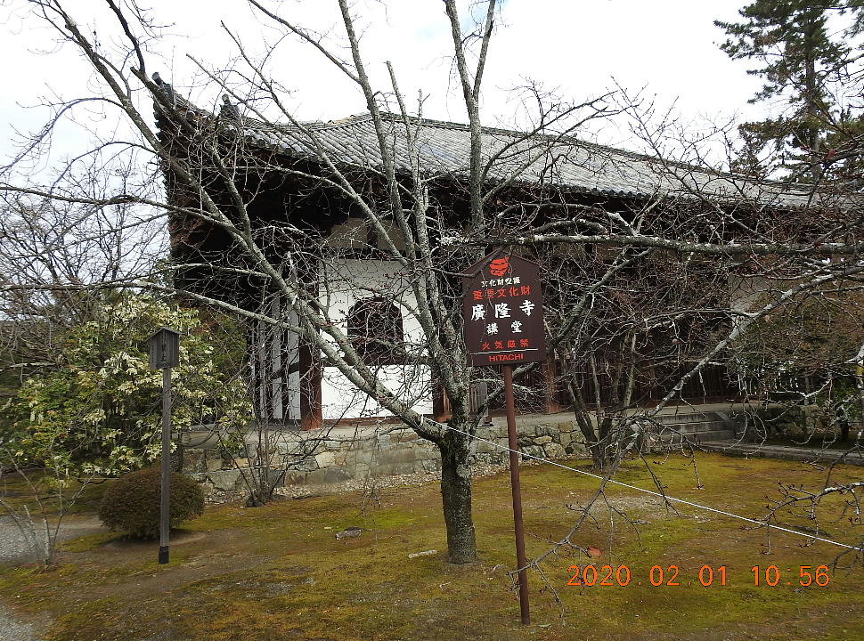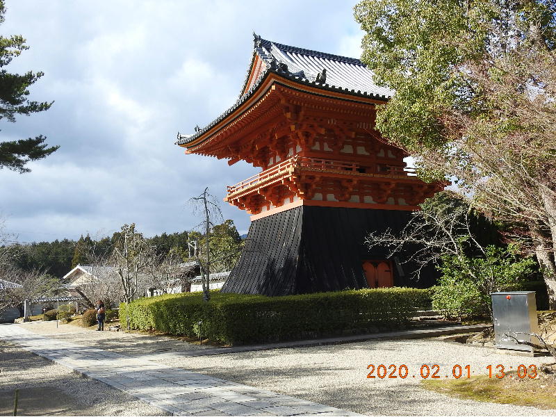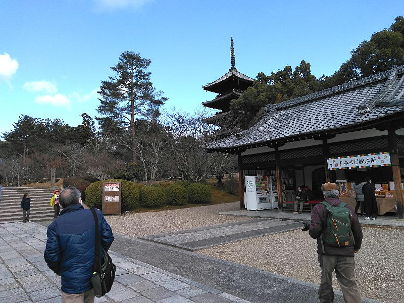 踊っているように歩いてくる乾さんと柳谷さん。なんか嬉しいことがあったかな? なお、『聖徳太子伝暦』には太子の楓野別宮(かえでのべつぐう)を寺にしたとする別伝を載せる。推古天皇12年( 604年)、聖徳 太子はある夜の夢に楓の林に囲まれた霊地を見た。そこには大きな桂の枯木があり、そこに五百の羅漢が集まって読経していたとい う。太子が秦河勝にこのことを語ったところ、河勝はその霊地は自分の所領の葛野(かどの)であると言う。河勝の案内で太子が葛 野へ行ってみると、夢に見たような桂の枯木があり、そこに無数の蜂が集まって、その立てる音が太子の耳には尊い説法と聞こえた。 太子はここに楓野別宮を営み、河勝に命じて一寺を建てさせたという。この説話は寺内の桂宮院(けいきゅういん、後述)の由来と 関連して取り上げられる。