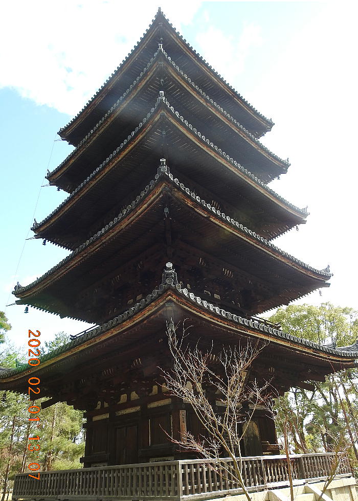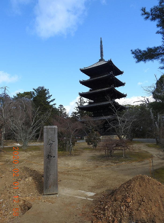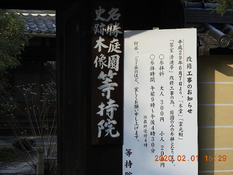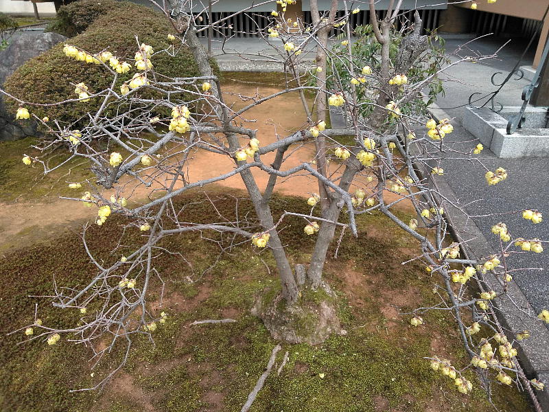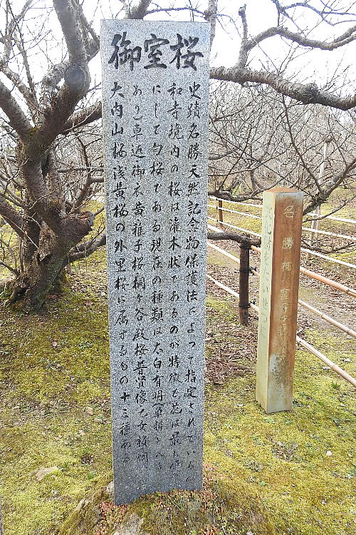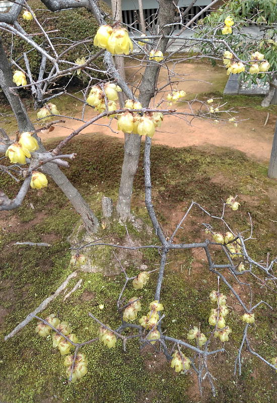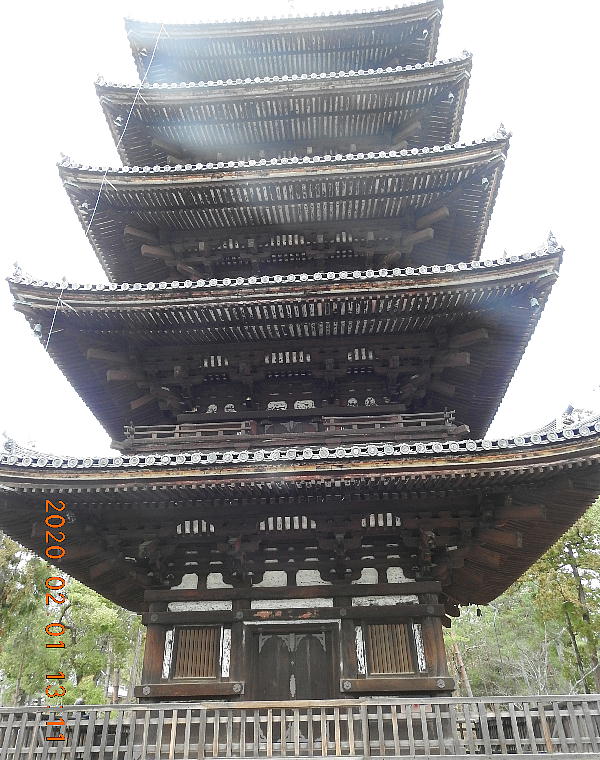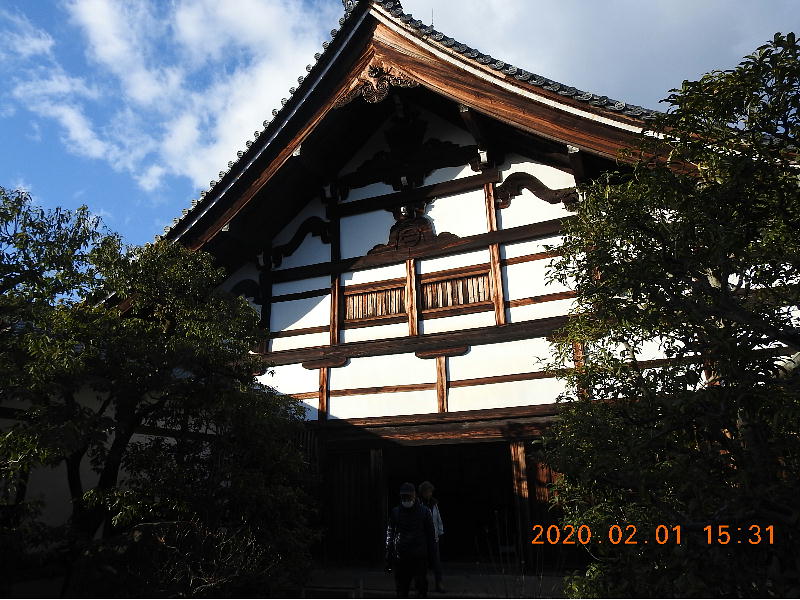 踊っているように歩いてくる乾さんと柳谷さん。なんか嬉しいことがあったかな? なお、『聖徳太子伝暦』には太子の楓野別宮(かえでのべつぐう)を寺にしたとする別伝を載せる。推古天皇12年( 604年)、聖徳 太子はある夜の夢に楓の林に囲まれた霊地を見た。そこには大きな桂の枯木があり、そこに五百の羅漢が集まって読経していたとい う。太子が秦河勝にこのことを語ったところ、河勝はその霊地は自分の所領の葛野(かどの)であると言う。河勝の案内で太子が葛 野へ行ってみると、夢に見たような桂の枯木があり、そこに無数の蜂が集まって、その立てる音が太子の耳には尊い説法と聞こえた。 太子はここに楓野別宮を営み、河勝に命じて一寺を建てさせたという。この説話は寺内の桂宮院(けいきゅういん、後述)の由来と 関連して取り上げられる。