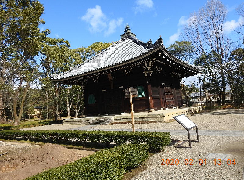 平安時代以降 広隆寺は弘仁9年(818年)の火災で全焼し、創建当時の建物は残っていない。承和3年(836年)に広隆寺別当(住職)に就任した道昌 (空海の弟子)は焼失した堂塔や仏像の復興に努め、広隆寺中興の祖とされている。その後、久安6年(1150年)にも火災で全焼したが、 この時は比較的短期間で復興し、永万元年(1165年)に諸堂の落慶供養が行われている。現存する講堂(重要文化財)は、中世以降の改 造が甚だしいとはいえ、永万元年に完成した建物の後身と考えられている。![]()