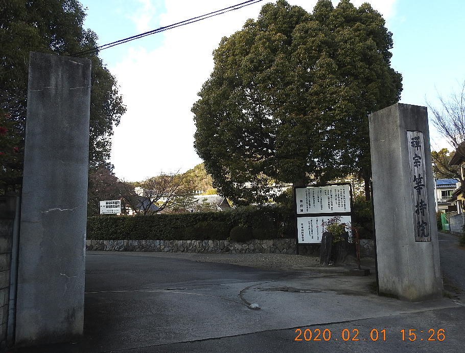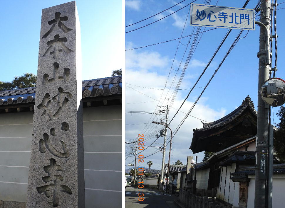 平安京の北西部を占める風光明媚な妙心寺の地には、花園上皇の花園御所(離宮萩原殿)があった。花園上皇は、建武二年(1335年)落飾 して法皇となり、花園御所(離宮萩原殿)を禅寺に改めることを発願した。法皇の禅の上での師は大徳寺開山の宗峰妙超(大燈国師)であ った。宗峰は建武四年(1337年)12月没するが、臨終間近の宗峰に花園法皇が「師の亡き後、自分は誰に法を問えばよいか」と尋ねたとこ ろ、宗峰は高弟の関山慧玄を推挙した。その頃、美濃(岐阜県)の伊深(美濃加茂市伊深町)で修行に明け暮れていた関山は、都に戻るこ とを渋っていたが、師僧・宗峰の遺命と花園法皇の院宣があっては辞去するわけにはいかず、暦応5年/康永元年(1342年)、妙心寺の開山 となった。なお、「正法山妙心寺」の山号寺号は宗峰が命名したもので、釈尊が嗣法の弟子・摩訶迦葉(まかかしょう)に向かって述べた 「正法眼蔵涅槃妙心」(「最高の悟り」というほどの意味)という句から取ったものである。