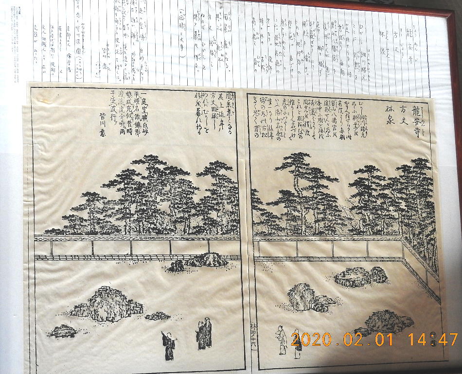絵入りの名所案内書(現代の旅行ガイドブックに相当)である『都名所図会』(安永9年(1780年)刊行)を見ると、当時、龍安寺の鏡容 池はオシドリの名所として知られており、今日有名な石庭よりも、池を中心とした池泉回遊式庭園の方が有名であった。 寛政9年(1797年) に京都奉行所へ提出された古地図には23か寺の塔頭があったが、寛政9年(1797年)の火災で方丈、仏殿など主要伽藍が焼失したため、塔 頭の西源院の方丈を移築して龍安寺の方丈(本堂)とし、現在にいたっている。その後、明治初期の廃仏毀釈によって衰退した。