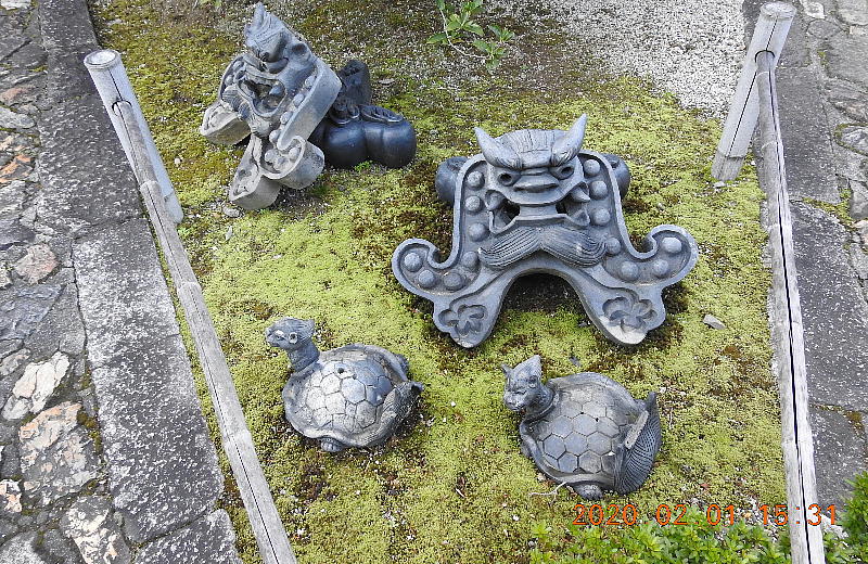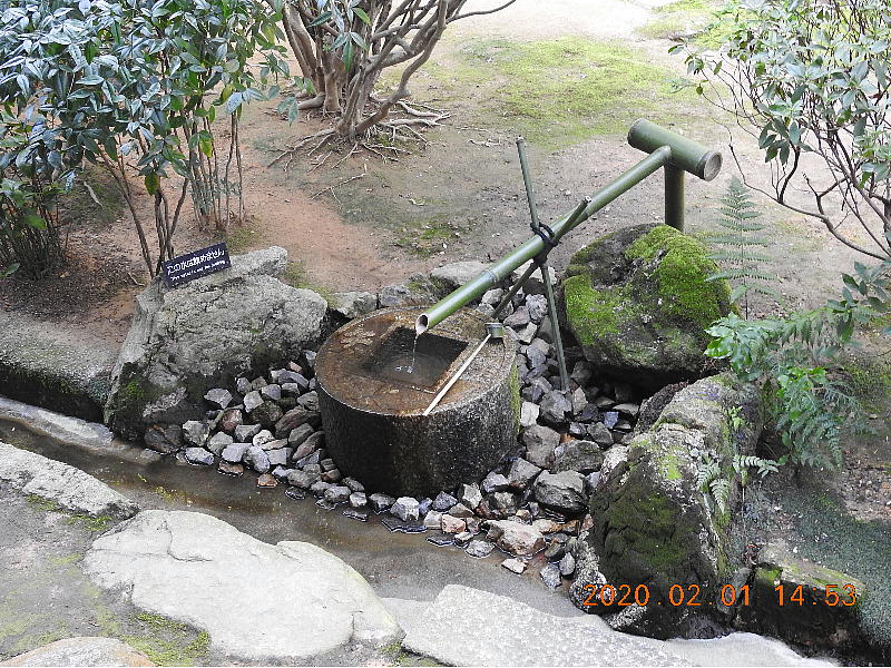 また、「七五三の庭」とは、東から5、2、3、2、3の5群で構成される石組を、5と2で七石、3と2で五石、そして3で三石と、七・五・三の3群 とも見られることによる。古来より奇数は陽数、すなわちおめでたい数とされ、その真ん中の数字をとったものである。 この石庭は、どの位置から眺めても必ずどこかの1つの石が見えないように配置されていることや、これらの石は全て戦国武将の織田信定が 運んだことでも有名である[7]。どこから鑑賞しても庭石が14個までしか見えないようになっているのは、ある石に別の石が重なるよう設計 されているためで、日本庭園における「重なり志向」を表したものともいわれている。