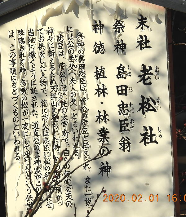 国史での初見は『続日本紀』大宝元年( 701年)条で、山背国葛野郡の「木島神」のほか月読神・樺井神・波都賀志神の神稲を同年以 後は中臣氏に給すると見える。『新抄格勅符抄』大同元年(806年)牒によれば、当時の「許志摩神」には神戸として山城国から9戸が 充てられていた。続けて国史では、天安3年( 859年)1月には「木島天照御魂神」の神階が正五位下に昇叙された旨や、同年(貞観 元年)9月・貞観17年(875年)7月・元慶元年(877年)6月には雨乞のための奉幣、貞観17年8月には秋稔のための奉幣が遣わされた旨 が記されているほか、元慶元年4月条にも記載が見える。
