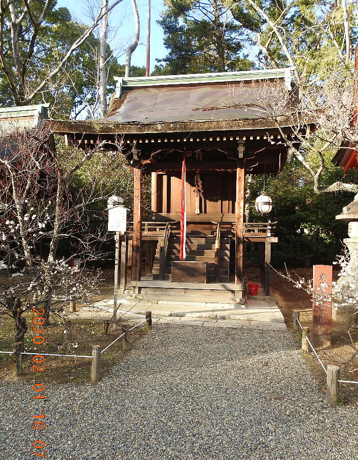 鎌倉時代の承久3年(1221年)の承久の乱では、『吾妻鏡』において後鳥羽上皇側の三浦胤義父子が「西山木嶋」で自殺したと見える が、これは当地に比定される。『承久記』によれば、胤義は「子の嶋と云ふ社」に隠れていたが末路を悟って自害し、郎従が社に火を かけたという。近年の境内発掘調査では、この焼失後の社殿再興時のものと見られる鎌倉時代前期頃の整地の跡が認められている。 その後は江戸時代頃まで文献に記載が見られず、変遷は不詳。安永9年(1780年)の『都名所図会』では当時の境内の様子が描かれて いる。明治維新後、明治6年(1873年)6月に近代社格制度において郷社に列した。昭和60年(1985年)に境内は京都市指定史跡に指定 された。平成14年(2002年)には、境内北東隅における消防用防火槽設置に伴い、史跡としての発掘調査が初めて実施されている。![]()