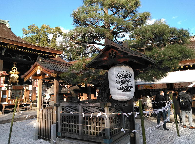 天正15年(1587年)10月1日、境内において豊臣秀吉による北野大茶湯が催行された。境内西側には史跡「御土居」がある。慶長12年 (1607年)には豊臣秀頼が片桐且元を奉行として現在の壮麗な社殿を造営している。![]()