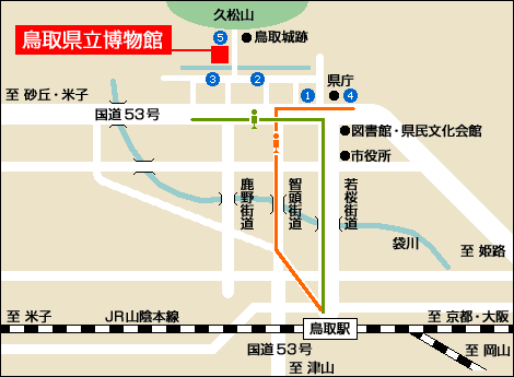鳥取県立博物館は、県民の教育及び文化の発展に寄与するための施設として久松山下鳥取城跡内に設立され、