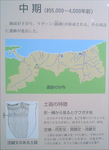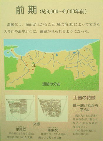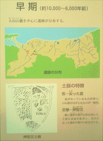 次に「歴史・民俗展示室」がある。この展示室では、およそ1万年前に、山陰人の祖先たちが大山のすそ野や砂