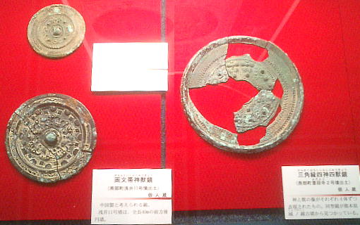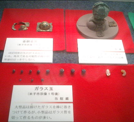 示品は、縄文時代・弥生時代の土器や石器、古墳におさめられた鏡・玉・埴輪、奈良時代の国庁や寺院からの出