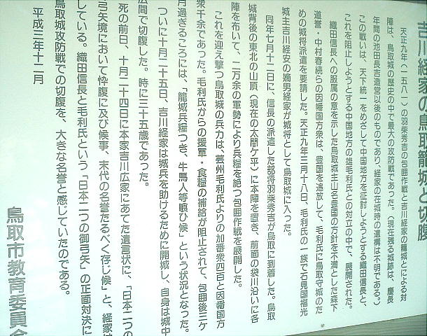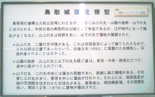 に関する資料などが展示されている。その背後は鳥取城跡である。鳥取城は戦国大名の山名氏が築いた城で、江戸